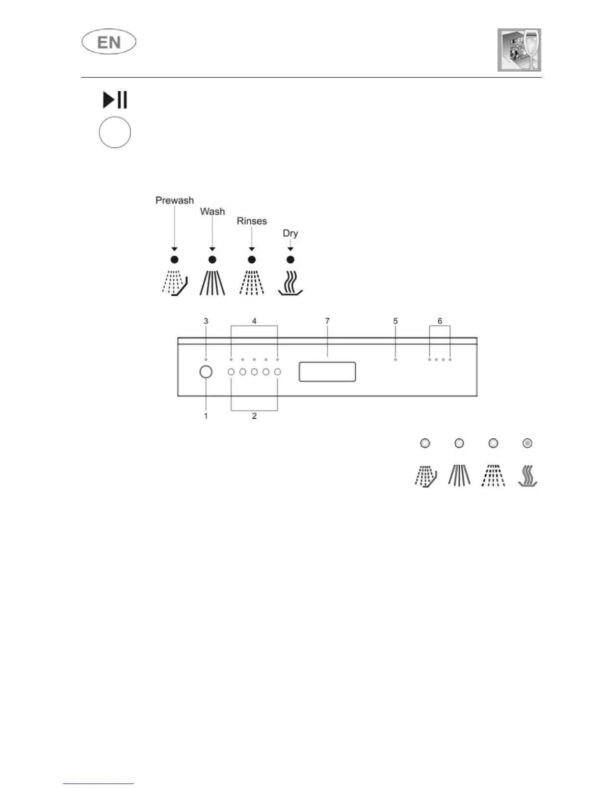 To start the dishwasher, press the button of the PROGRAM (2) required