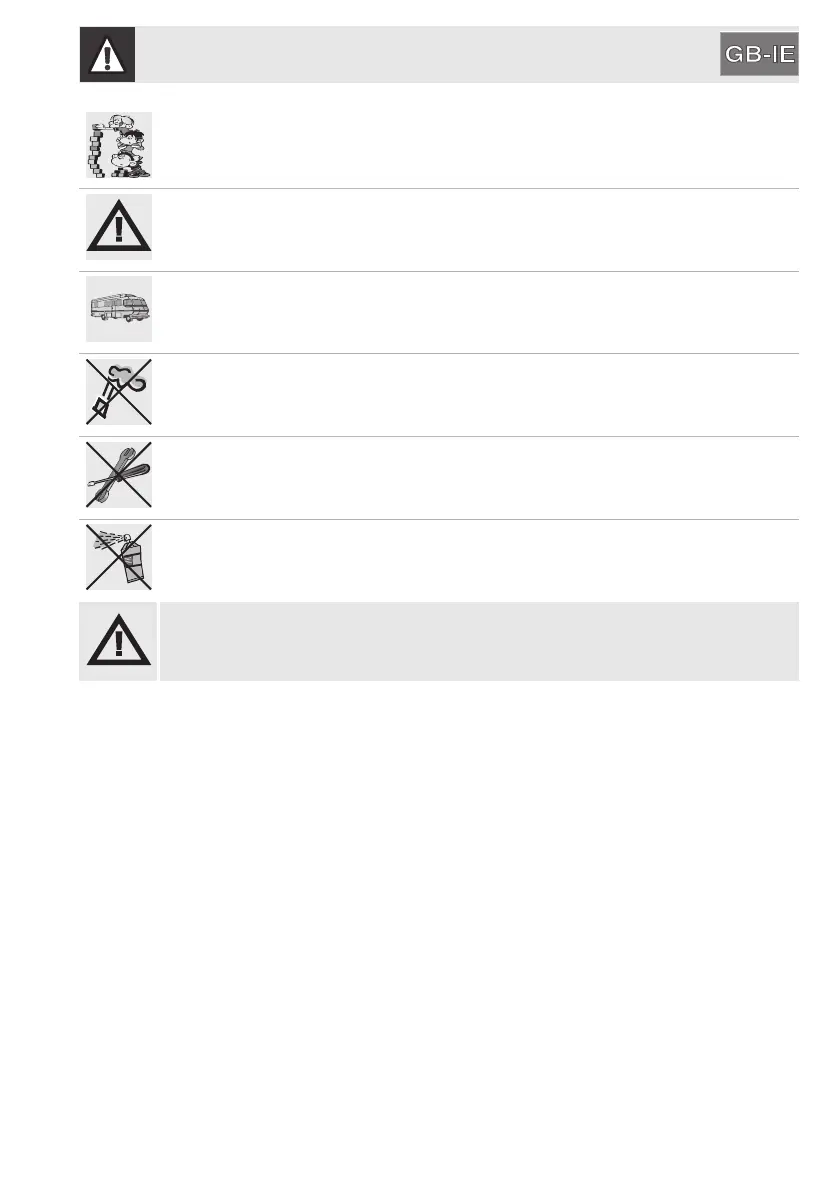 IF THE APPLIANCE IS INSTALLED ON CARAVANS OR BOATS, IT MUST NOT BE