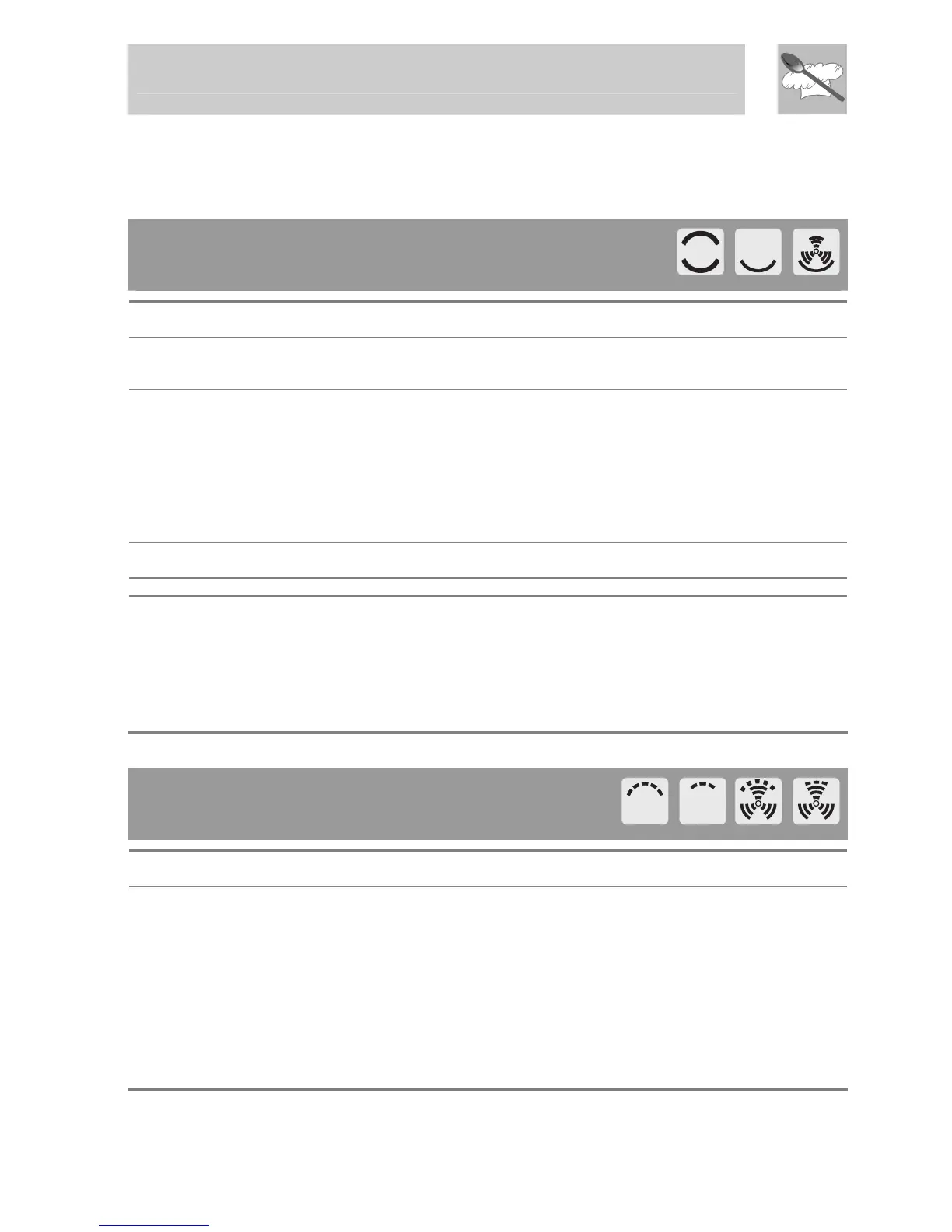 6.8 Recommended cooking table