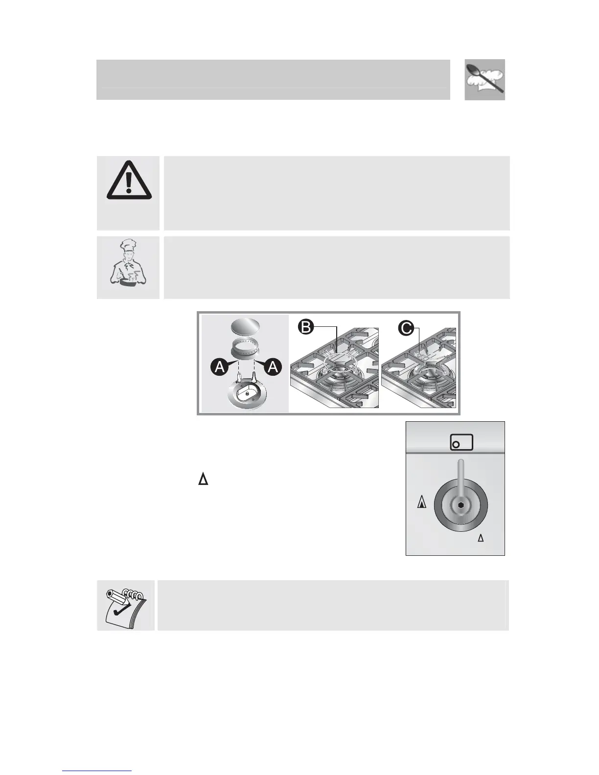 correct position and that their burner caps are in place, making sure