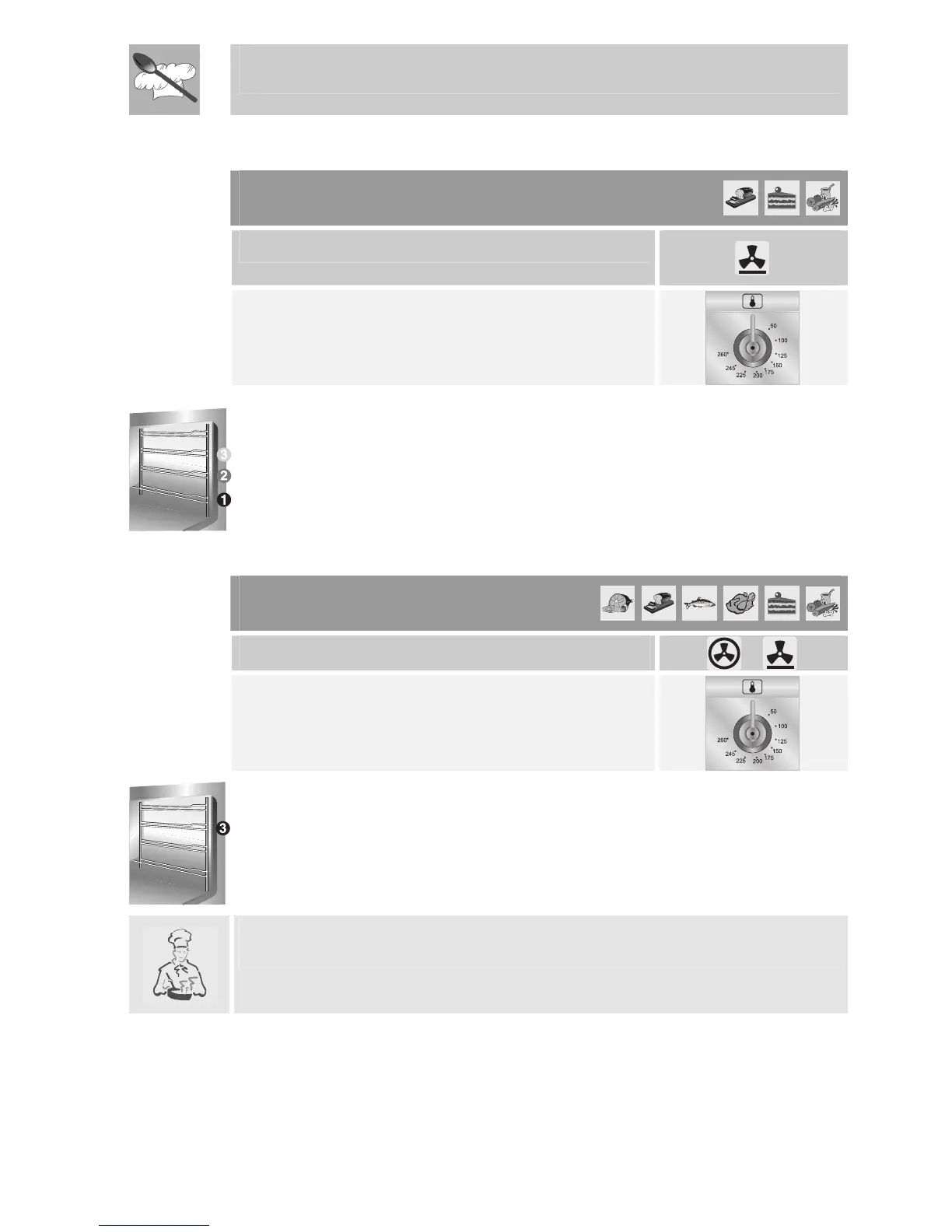 cooking at the bottom and with dishes requiring heat in the lower area in