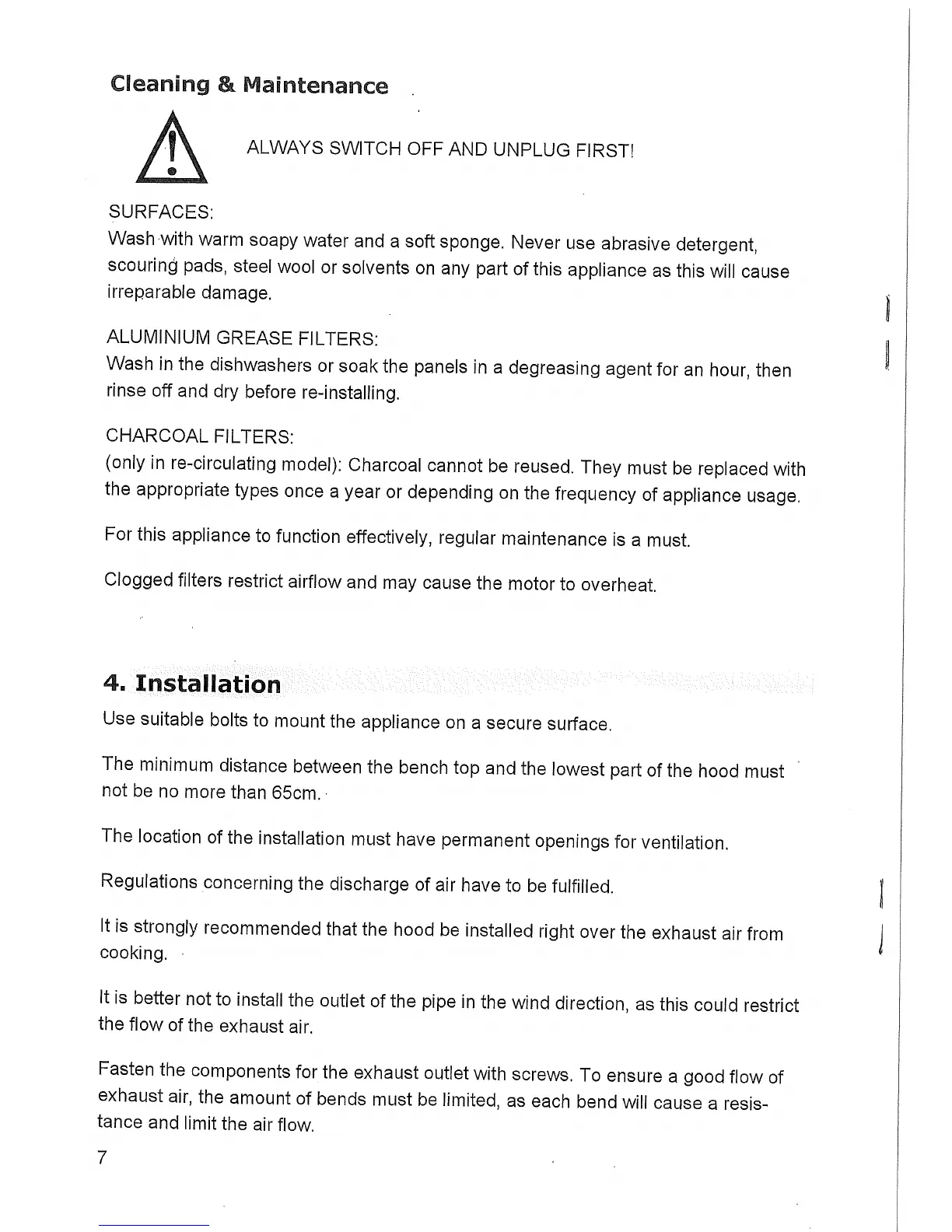 Smeg SA940CXA - Cleaning & Maintenance; Aluminium Grease Filters; Charcoal Filters; Installation Details