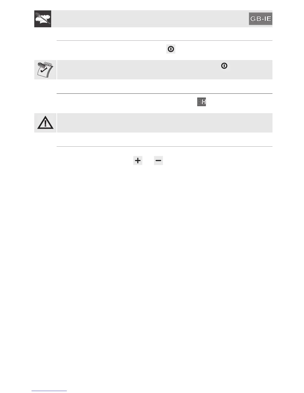 If the cooking zone is still hot after being switched off, the symbol will appear on the display. The
