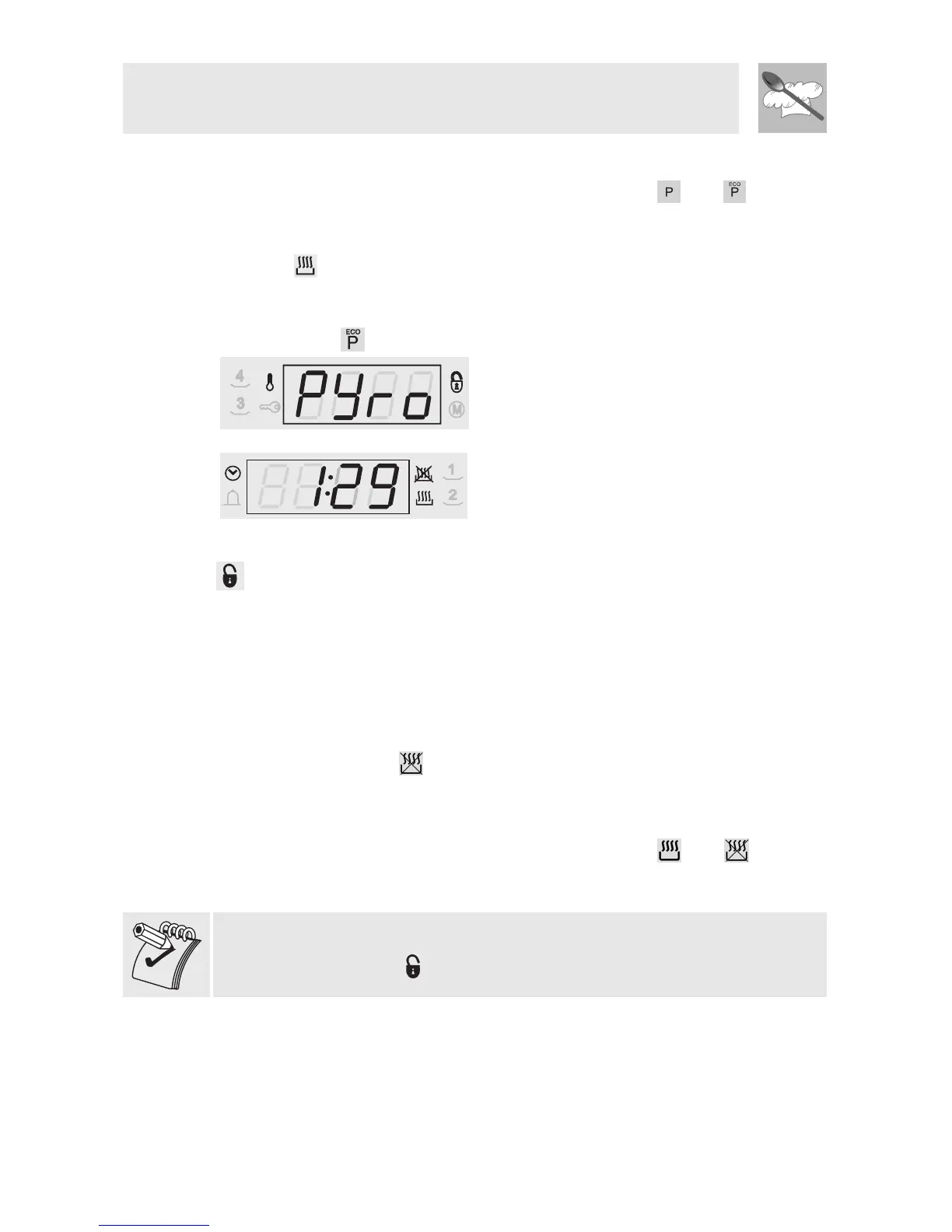(Pyrolysis) starts an interlock device which prevents opening the door. The