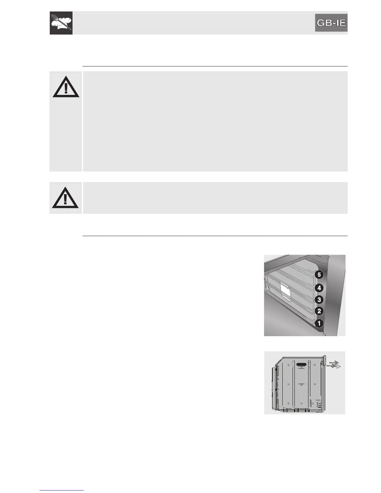 • Remove any labels (apart from the technical data plate) from trays, dripping