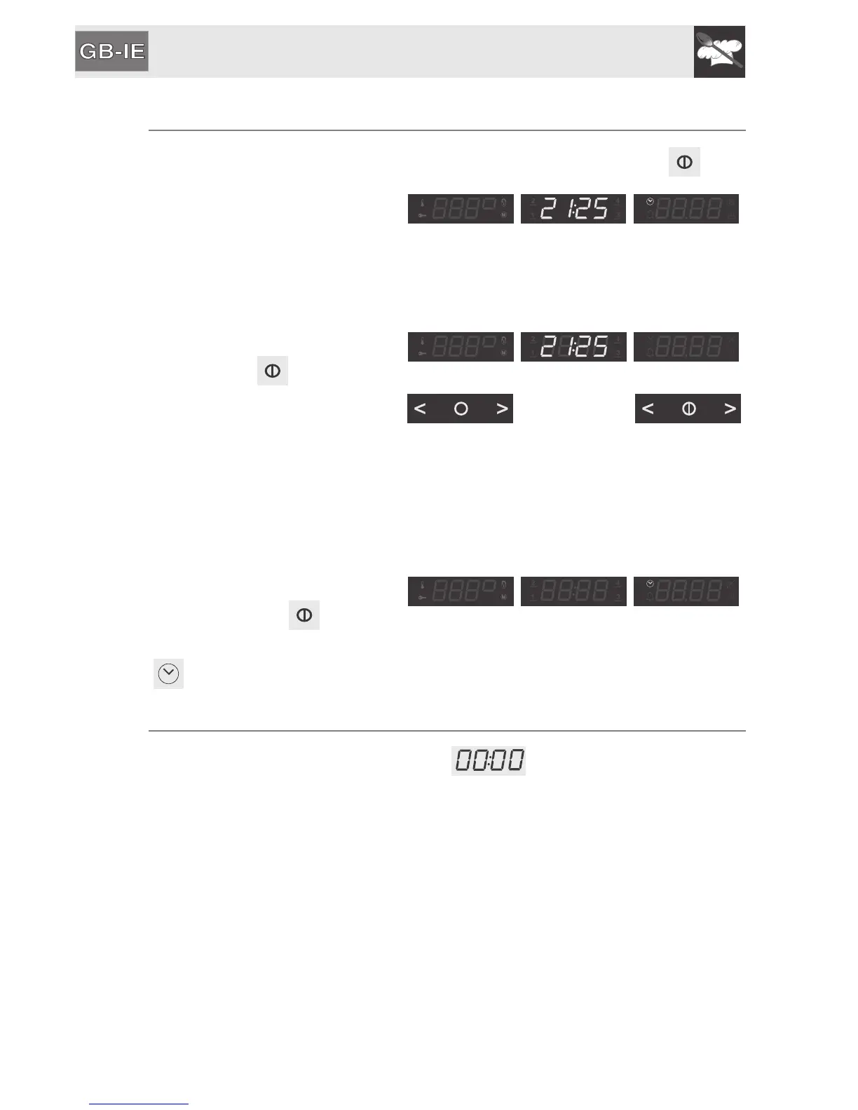 main display. To be able to start any cooking function, the current time must be
