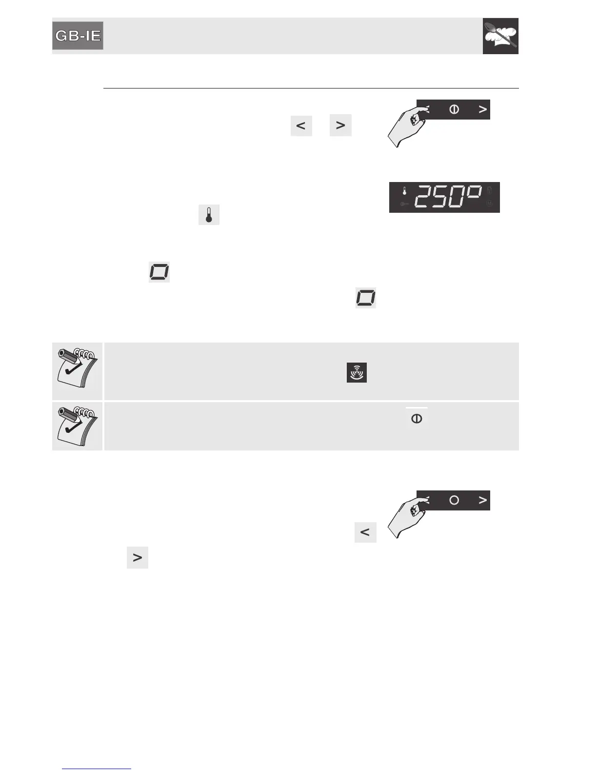 After selection of the function desired, the oven will