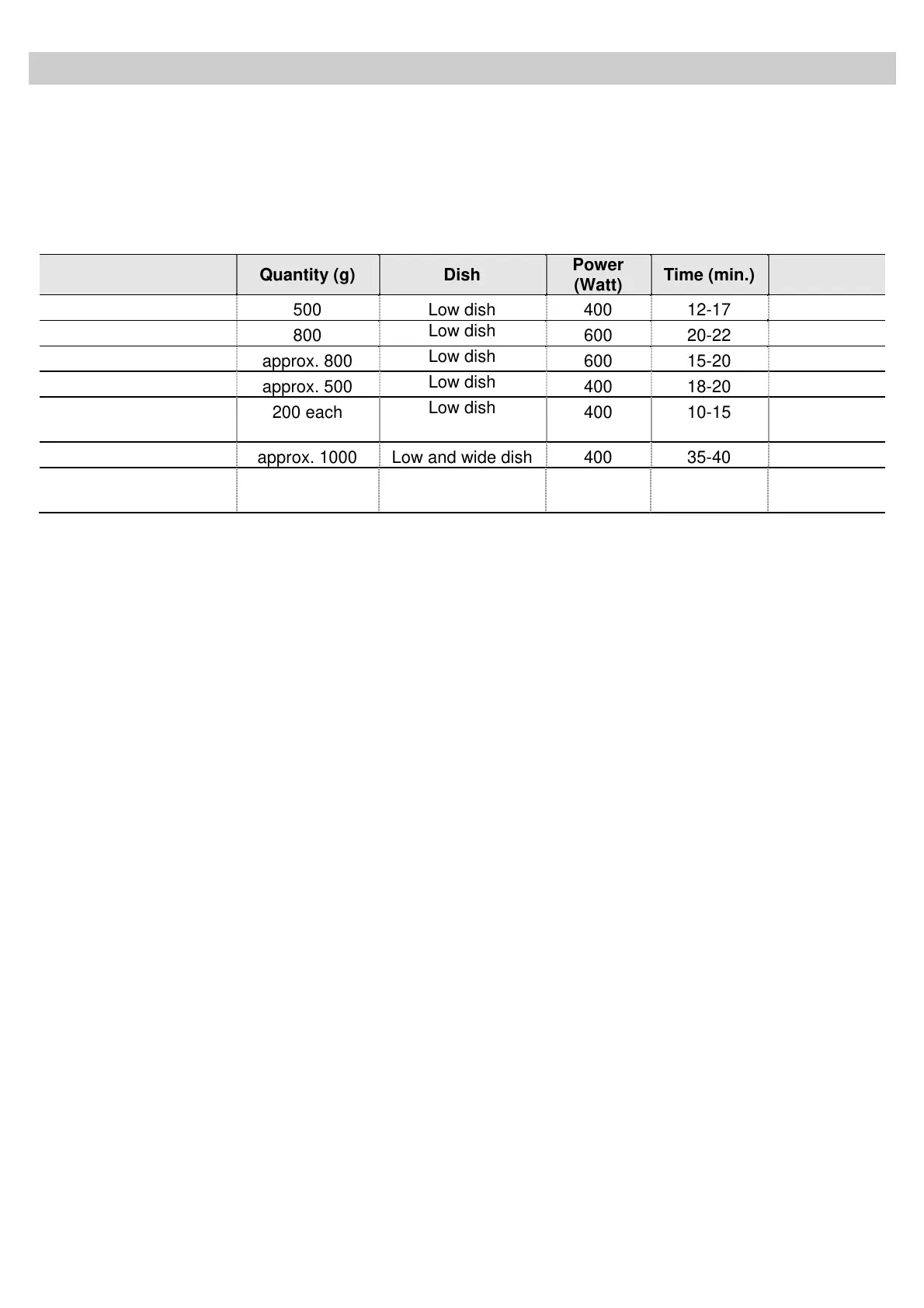 Chicken approx. 1000 Low and wide dish 400 35-40 3-5