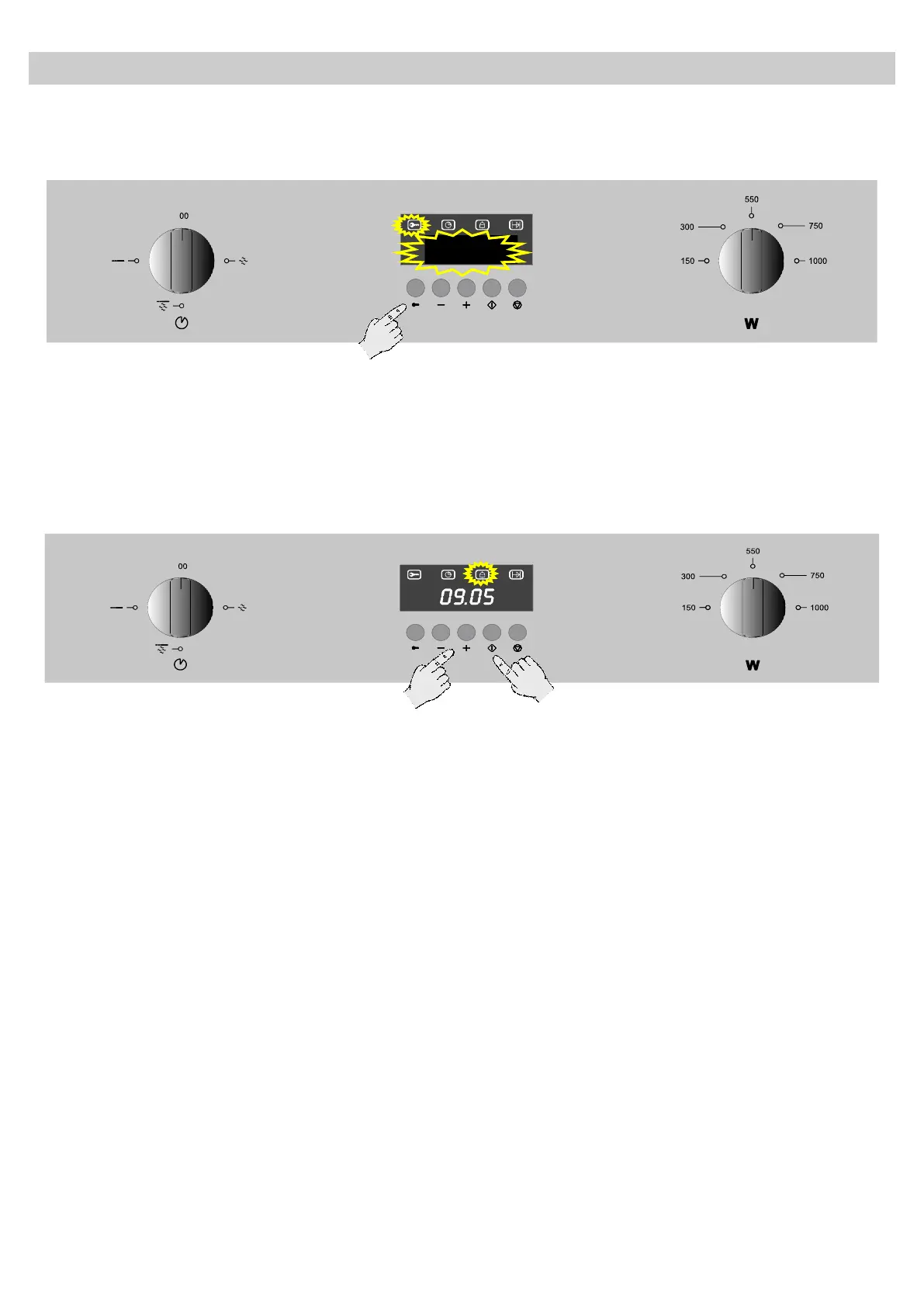 1. To block the oven, press the Child lock key