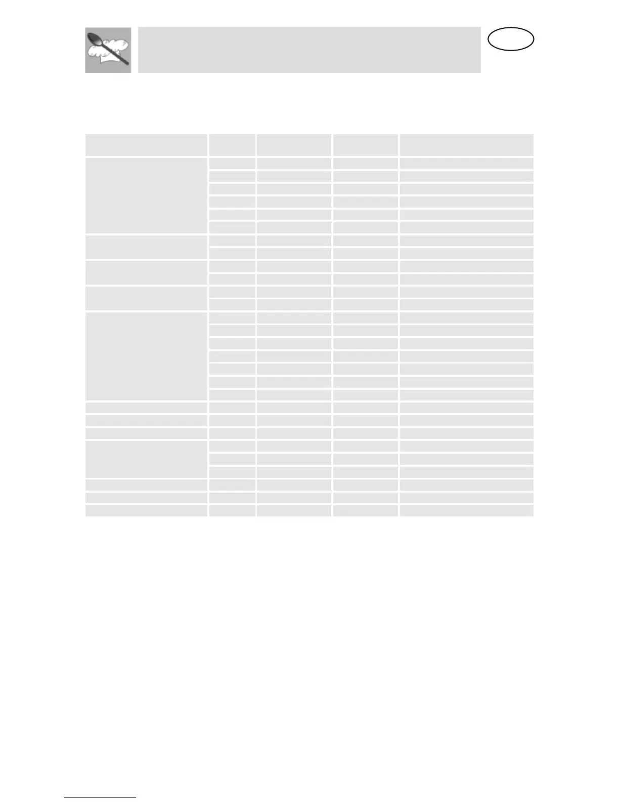 The table below shows different defrosting and standing times (in order to