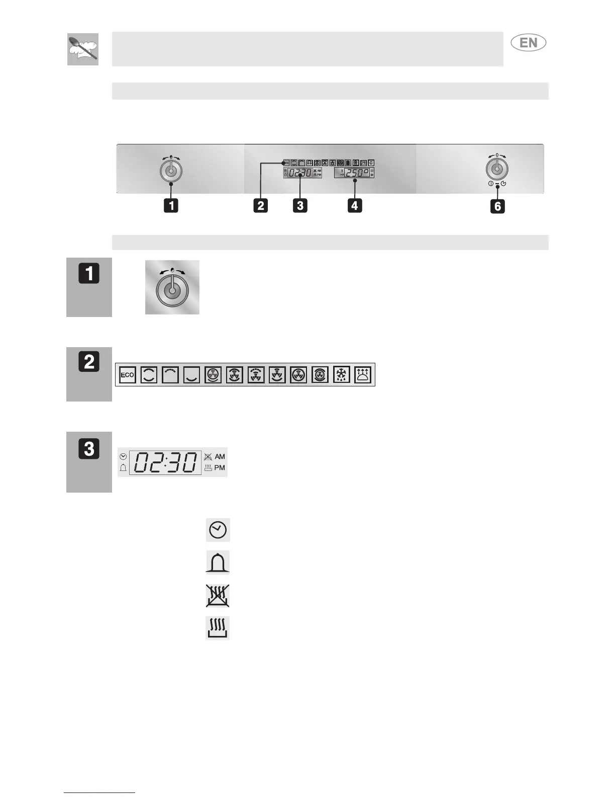 All the appliance's control and monitoring devices are located together on the front panel. The symbols