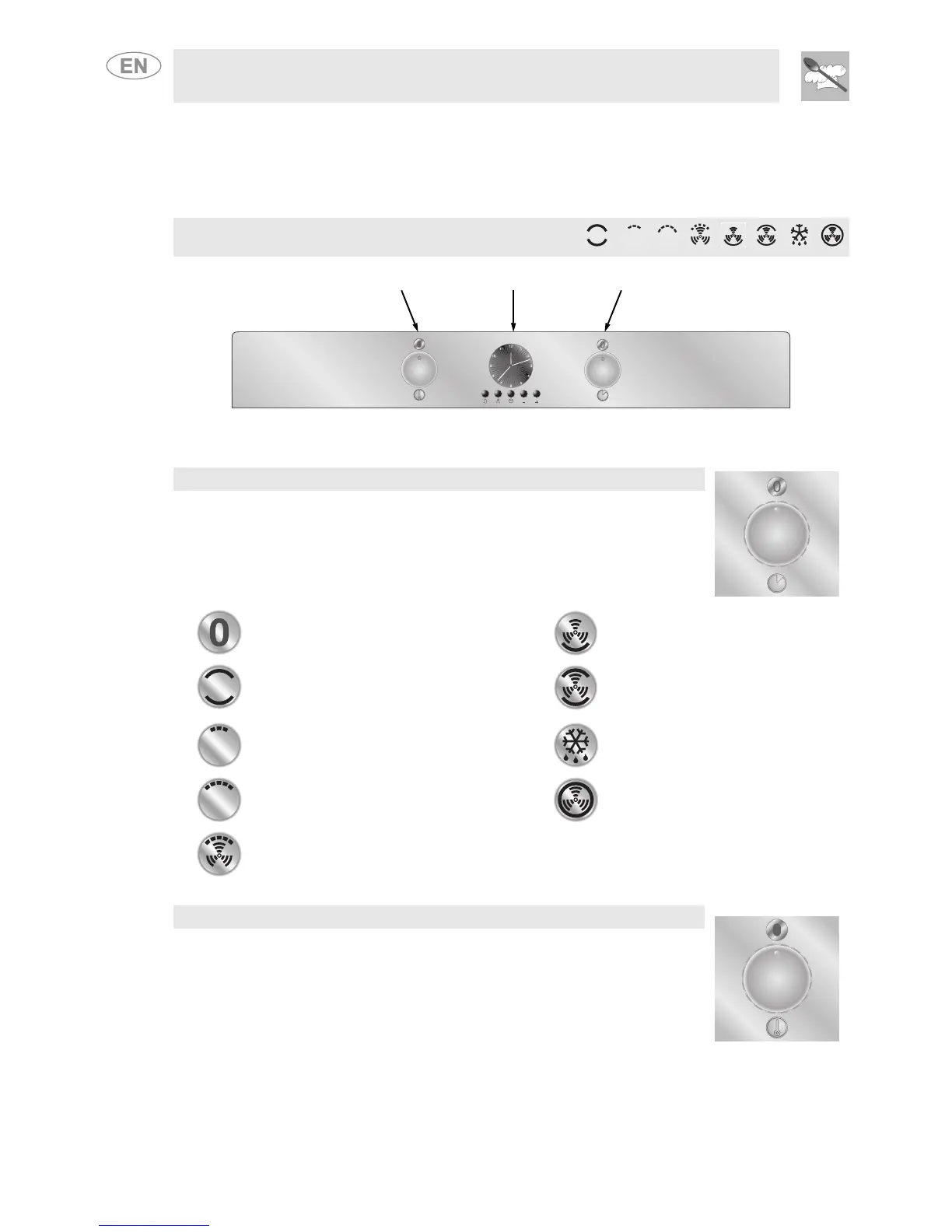 Selects the desired cooking functions. The symbols are shown below. By turning