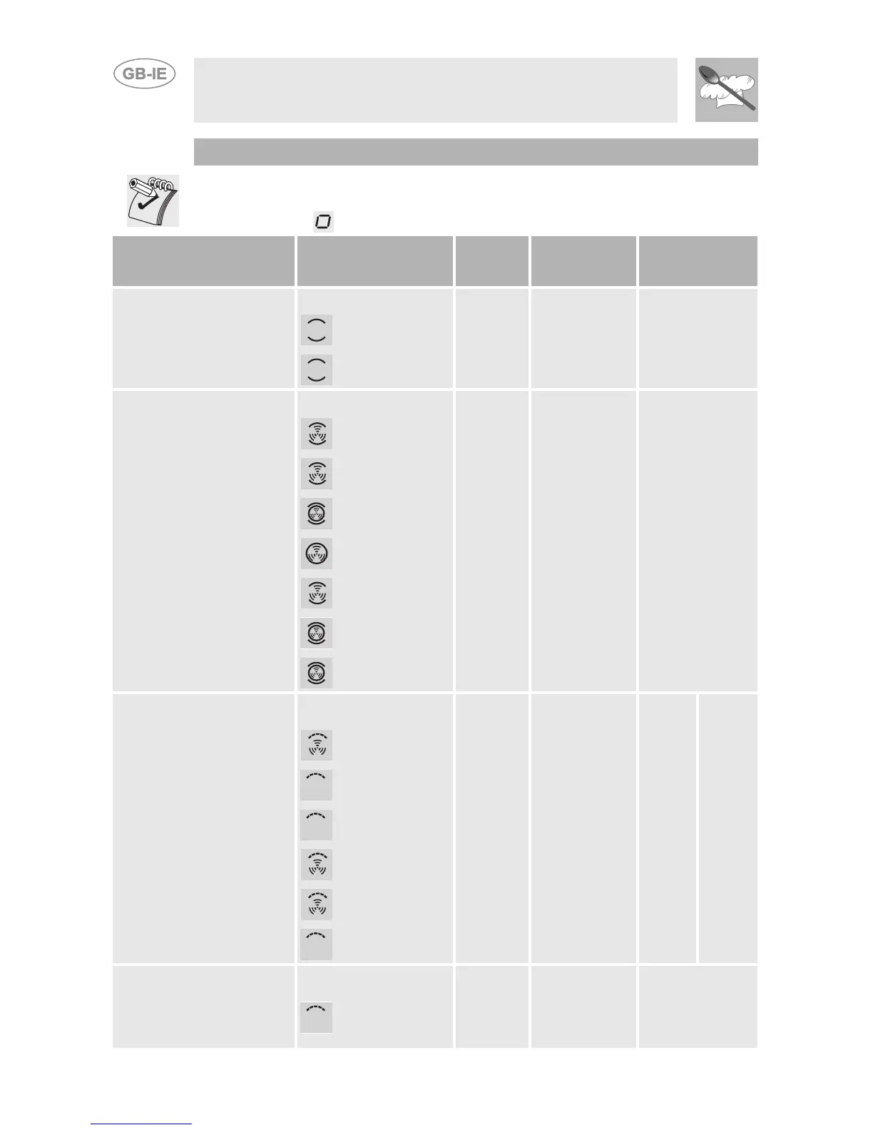 8.2 Cooking tables: