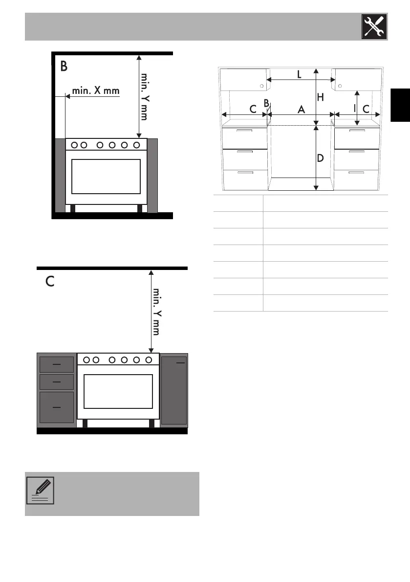 Minimum cabinet width (=A).