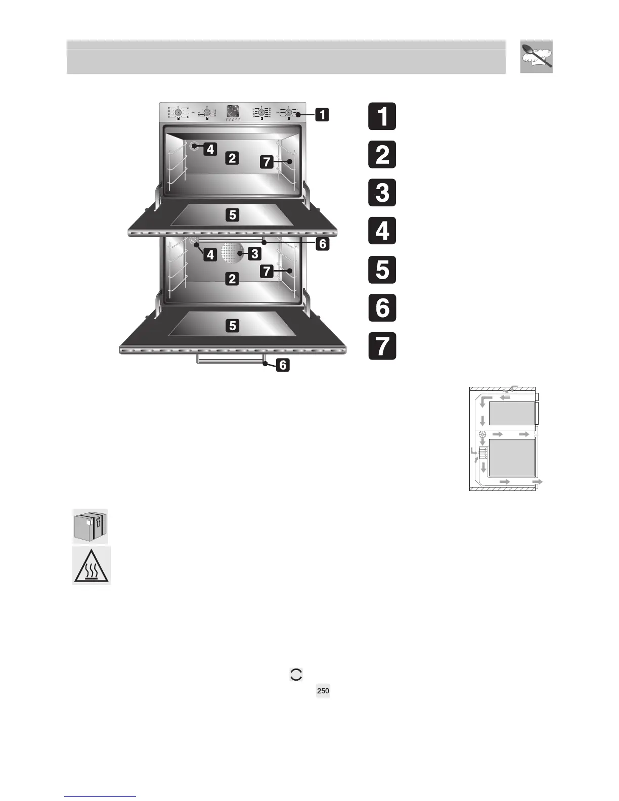 the oven is switched on. Operation of the fan generates a normal flow of air