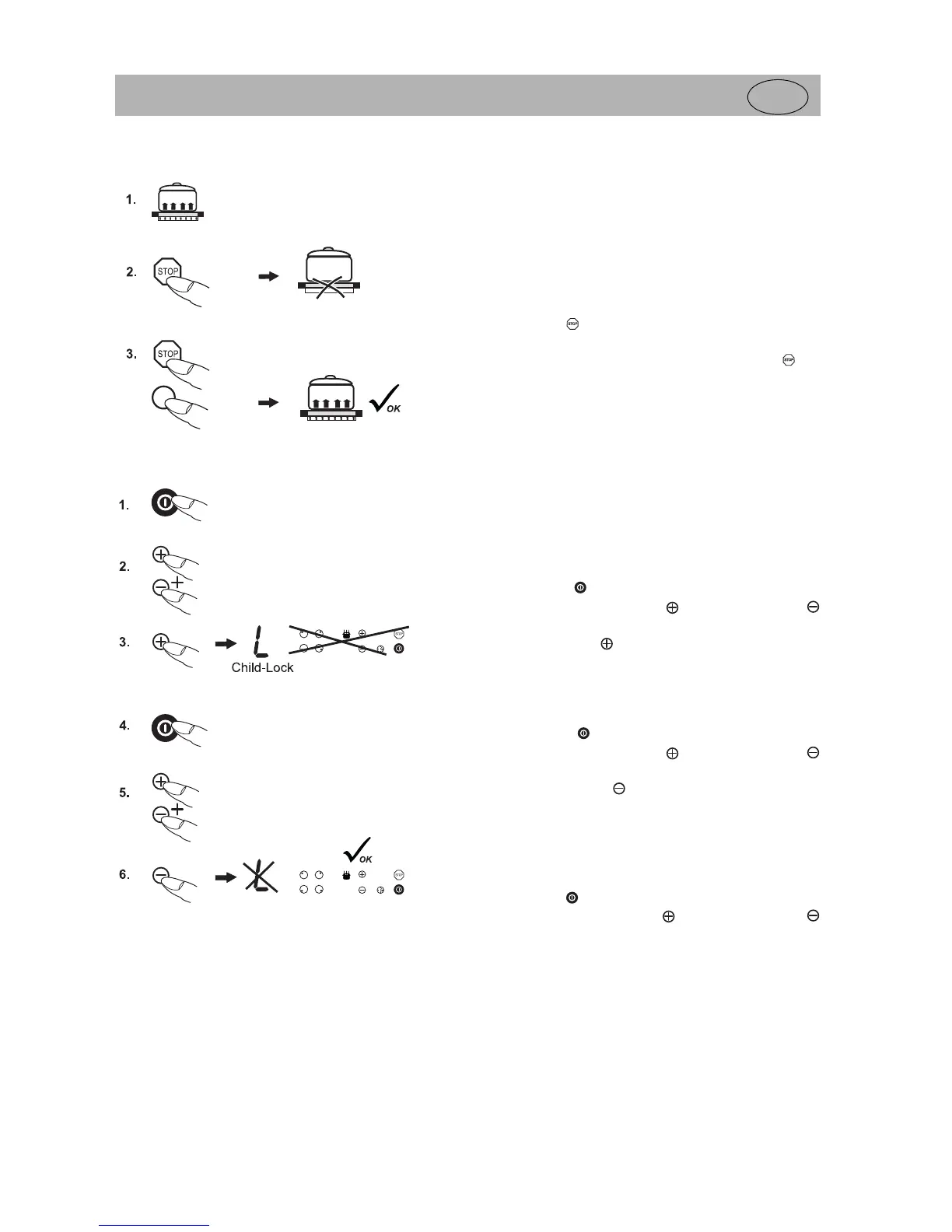 When the hob is switched off the childproof lock will be activated again