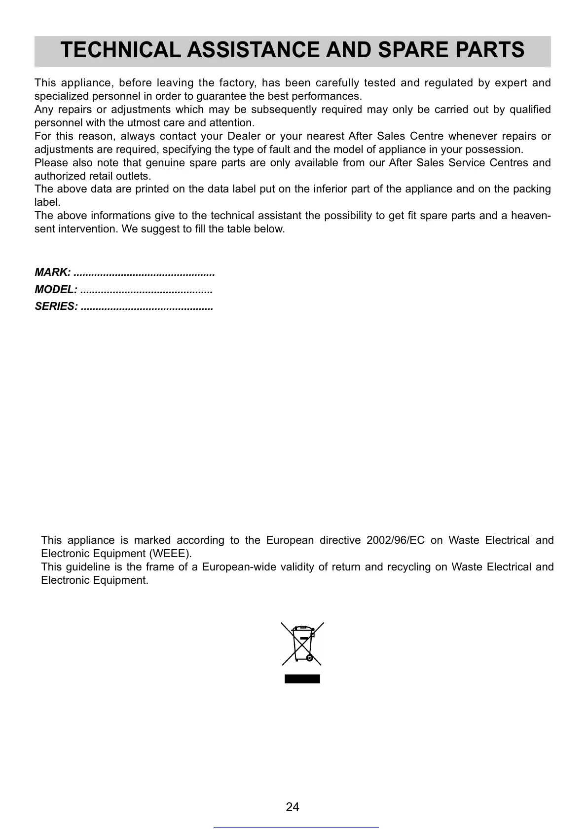 This appliance is marked according to the European directive 2002/96/EC on Waste Electrical and