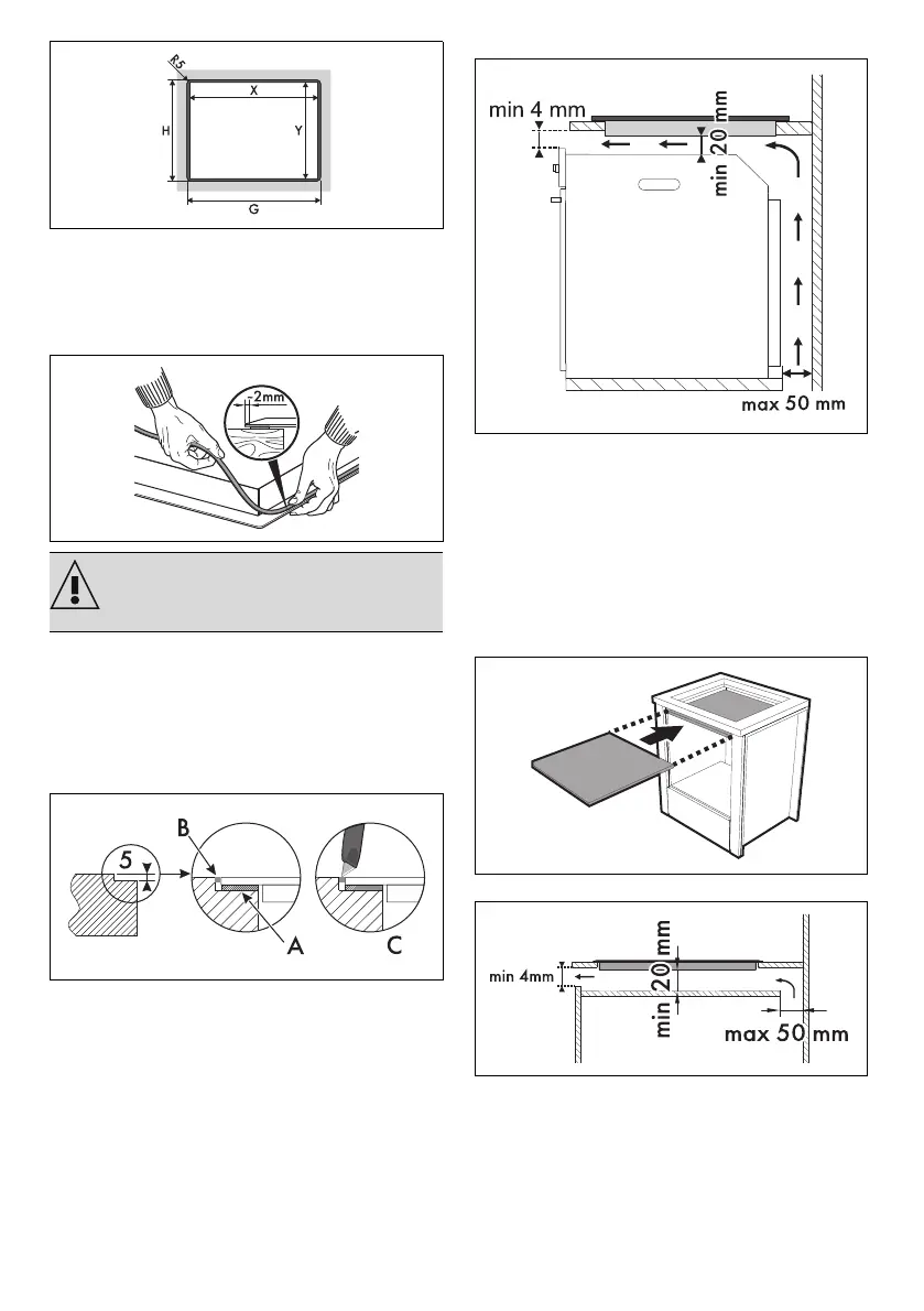 Do not use silicone to secure the hob.