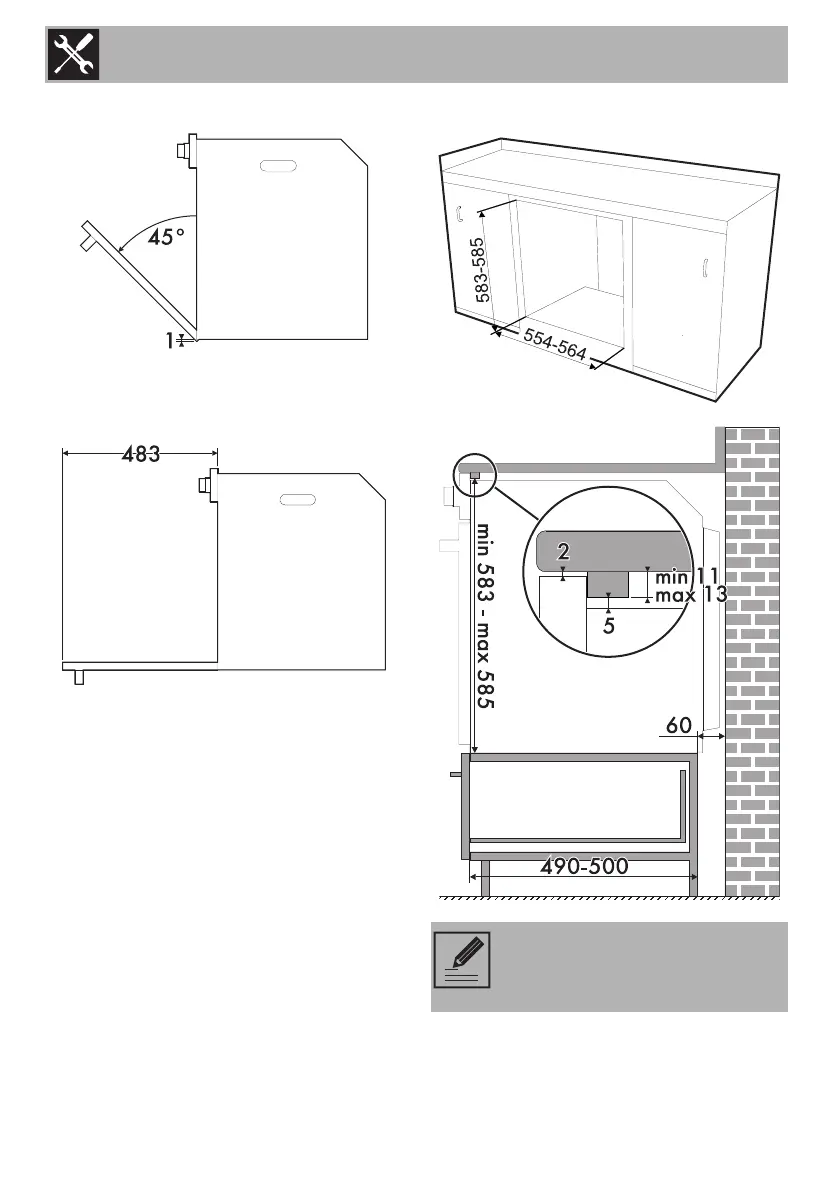 Mounting under worktops (mm)