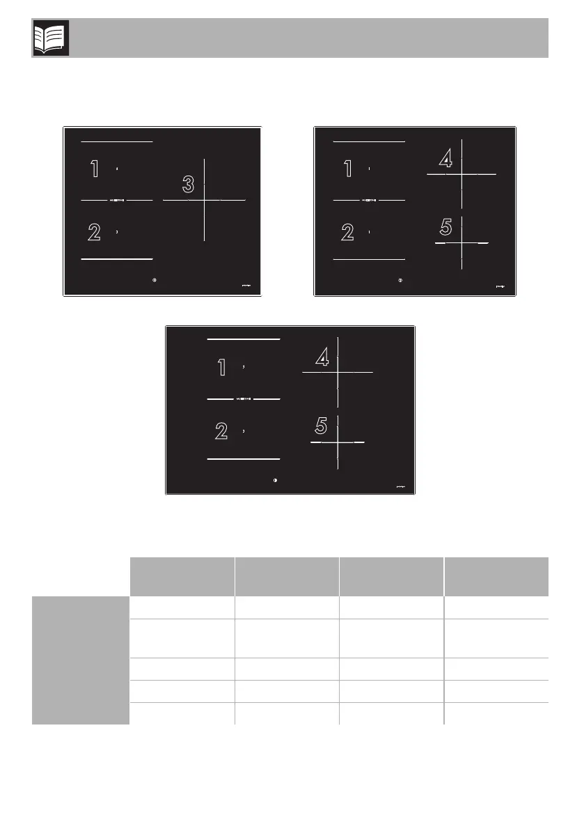 60 cm (3 cooking zones) 60 cm (4 cooking zones)