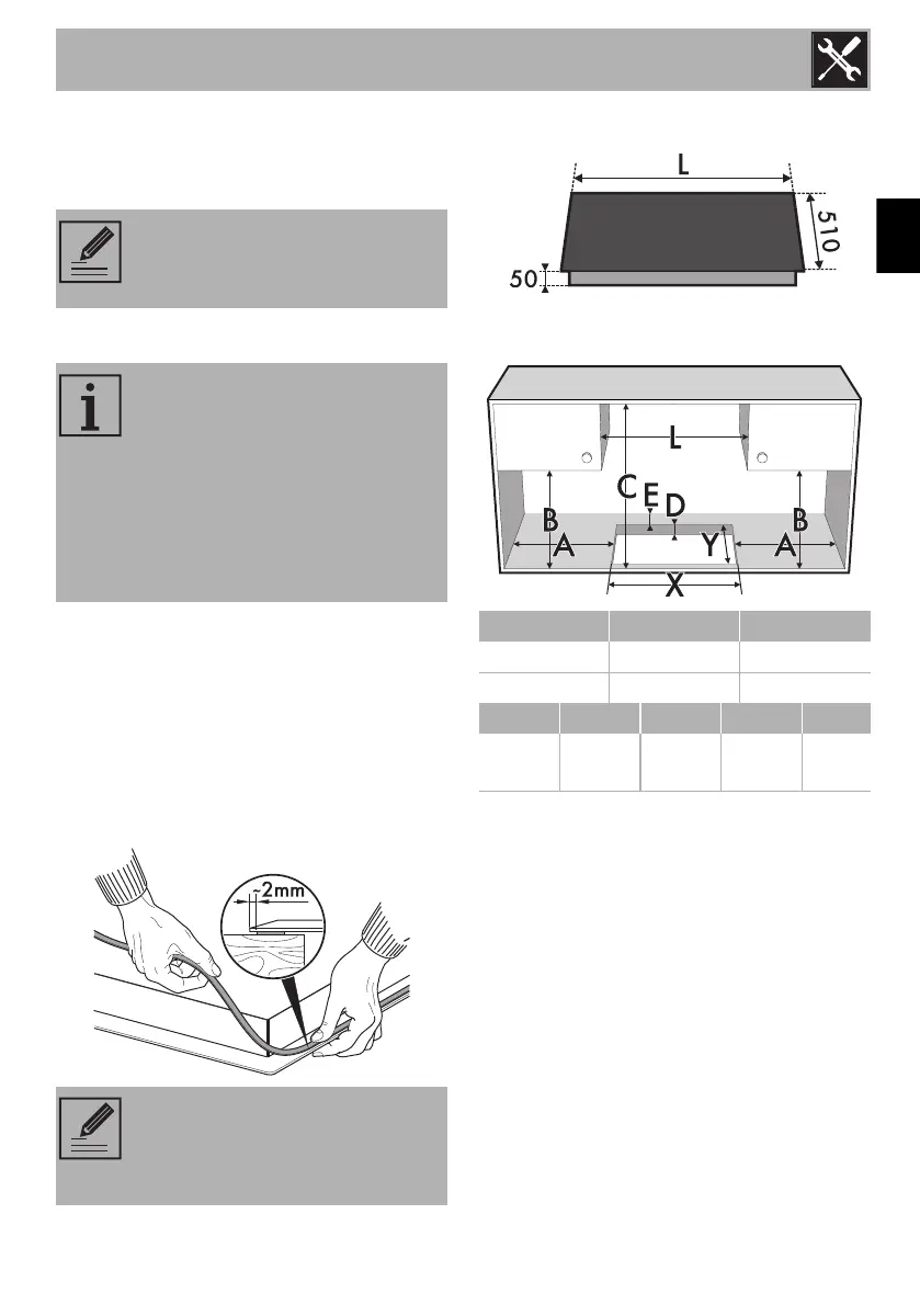 frame of the hob and the countertop, place