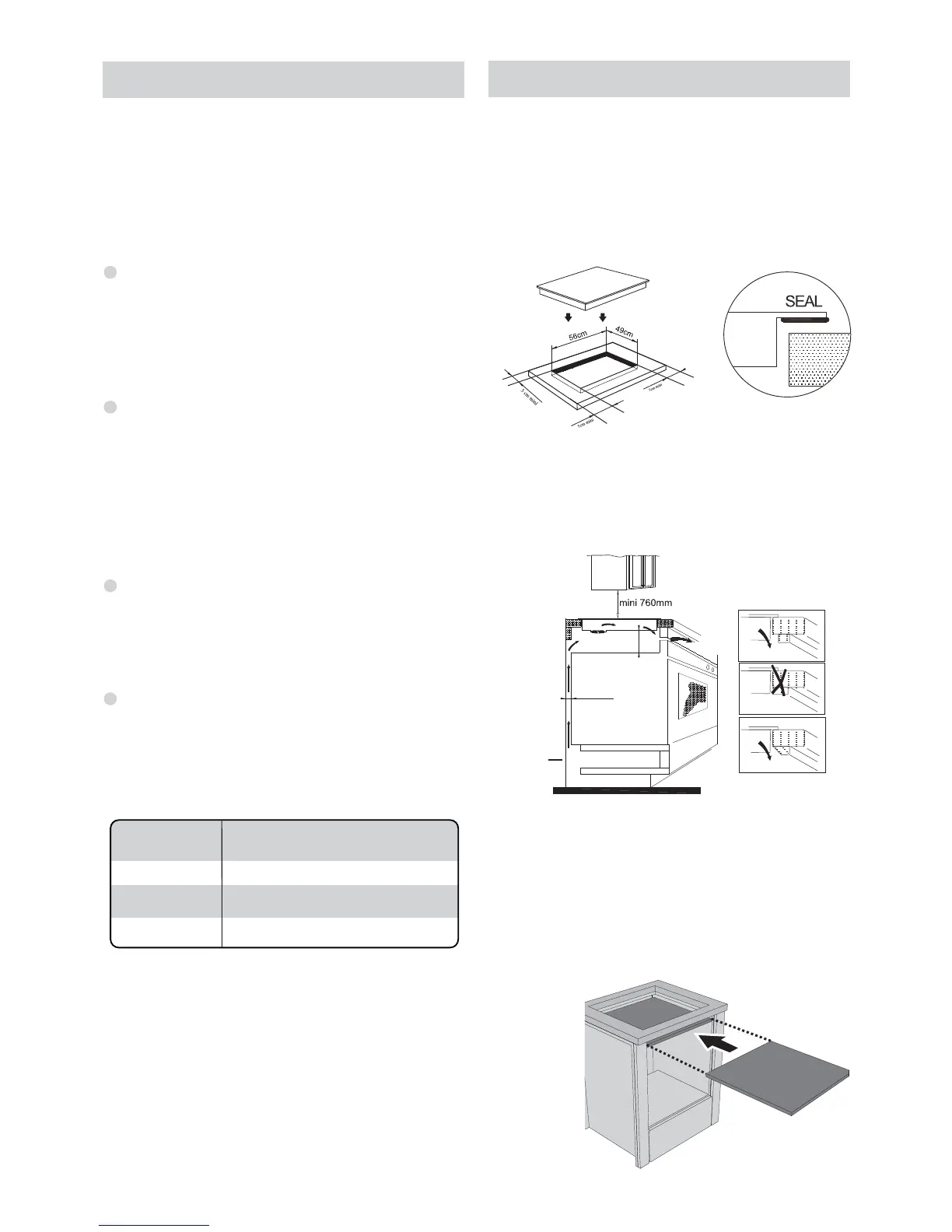 NB: For safety, the gap between the hob and