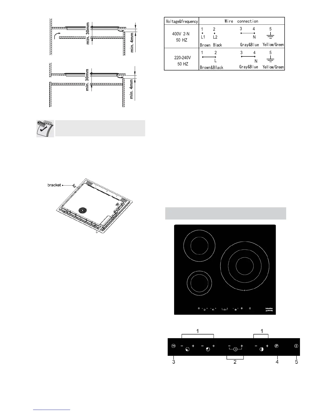 The induction hob should be installed so that