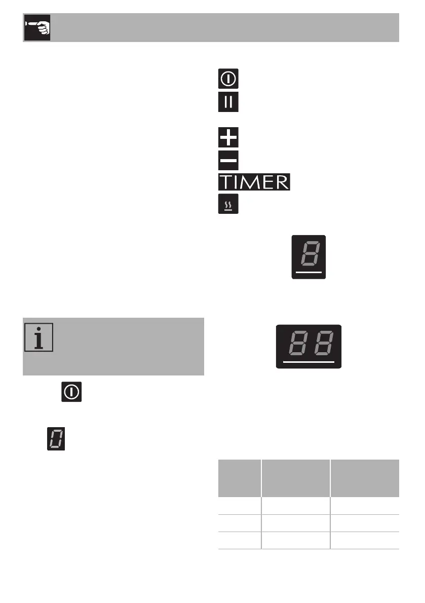 On/Off button: turns the hob on or off.