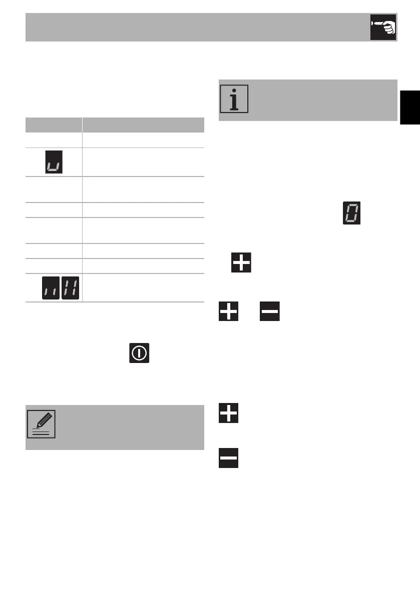 After switching on the hob: