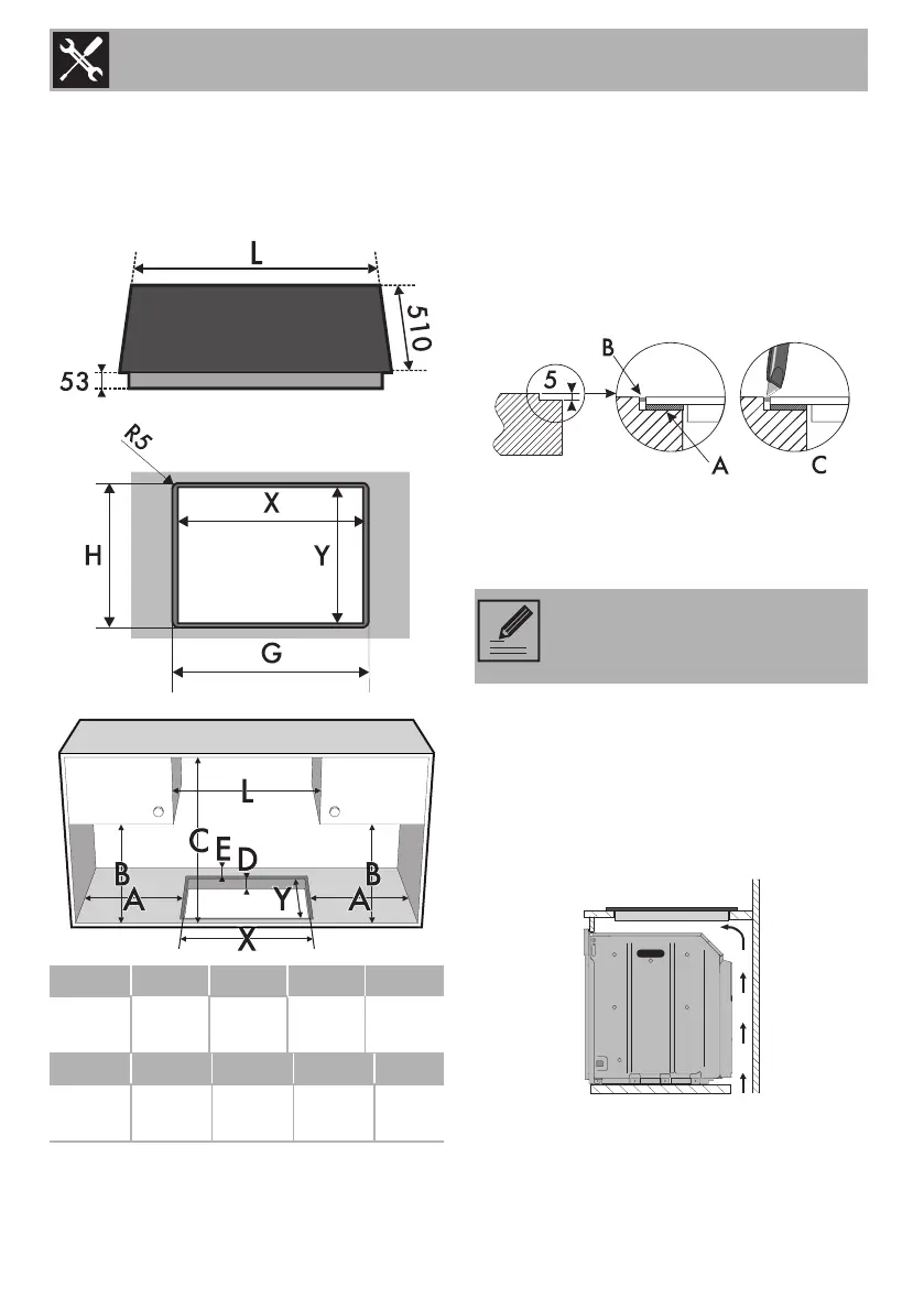 of the appliance installed below.
