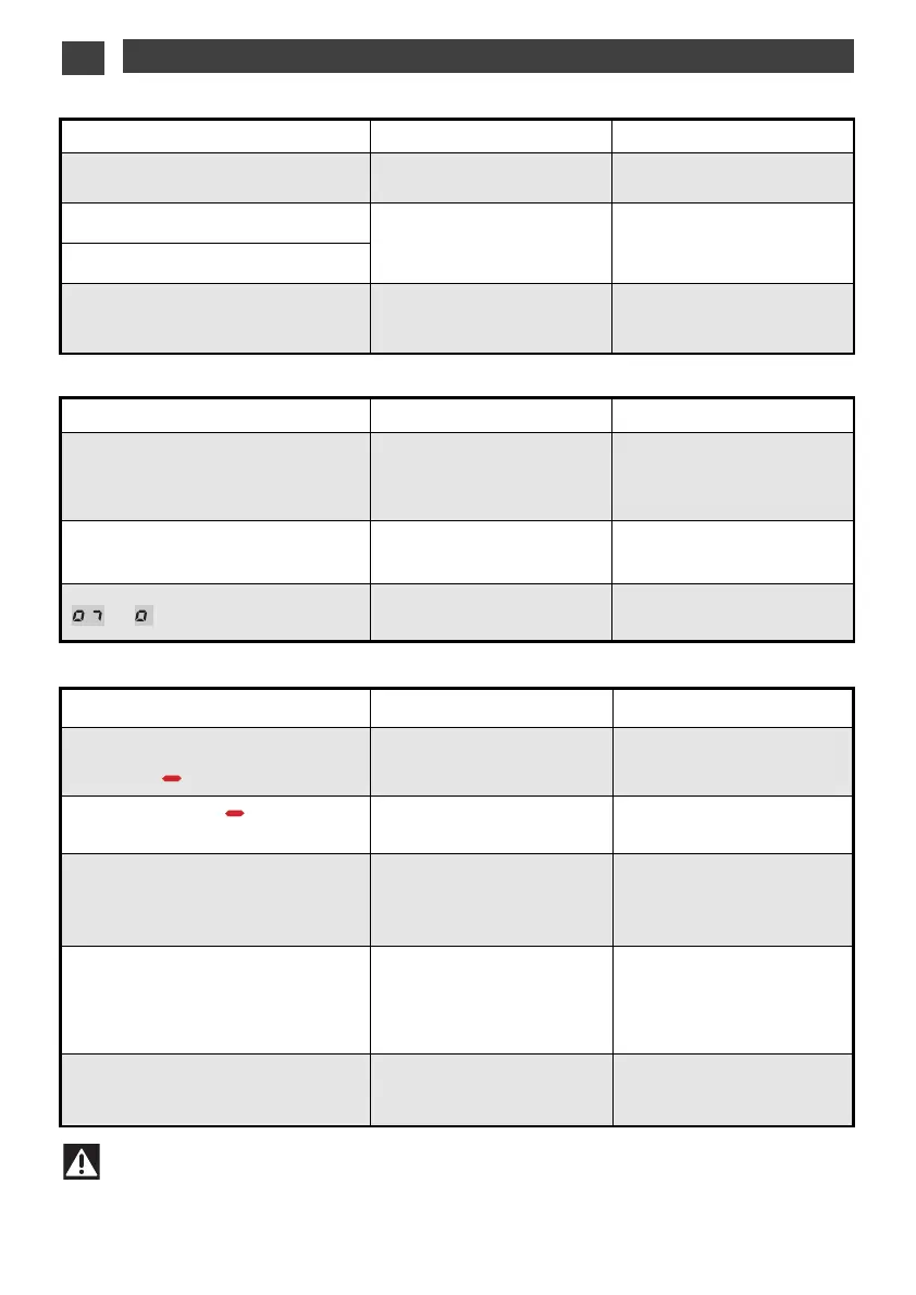 The hob does not operate and the indi-