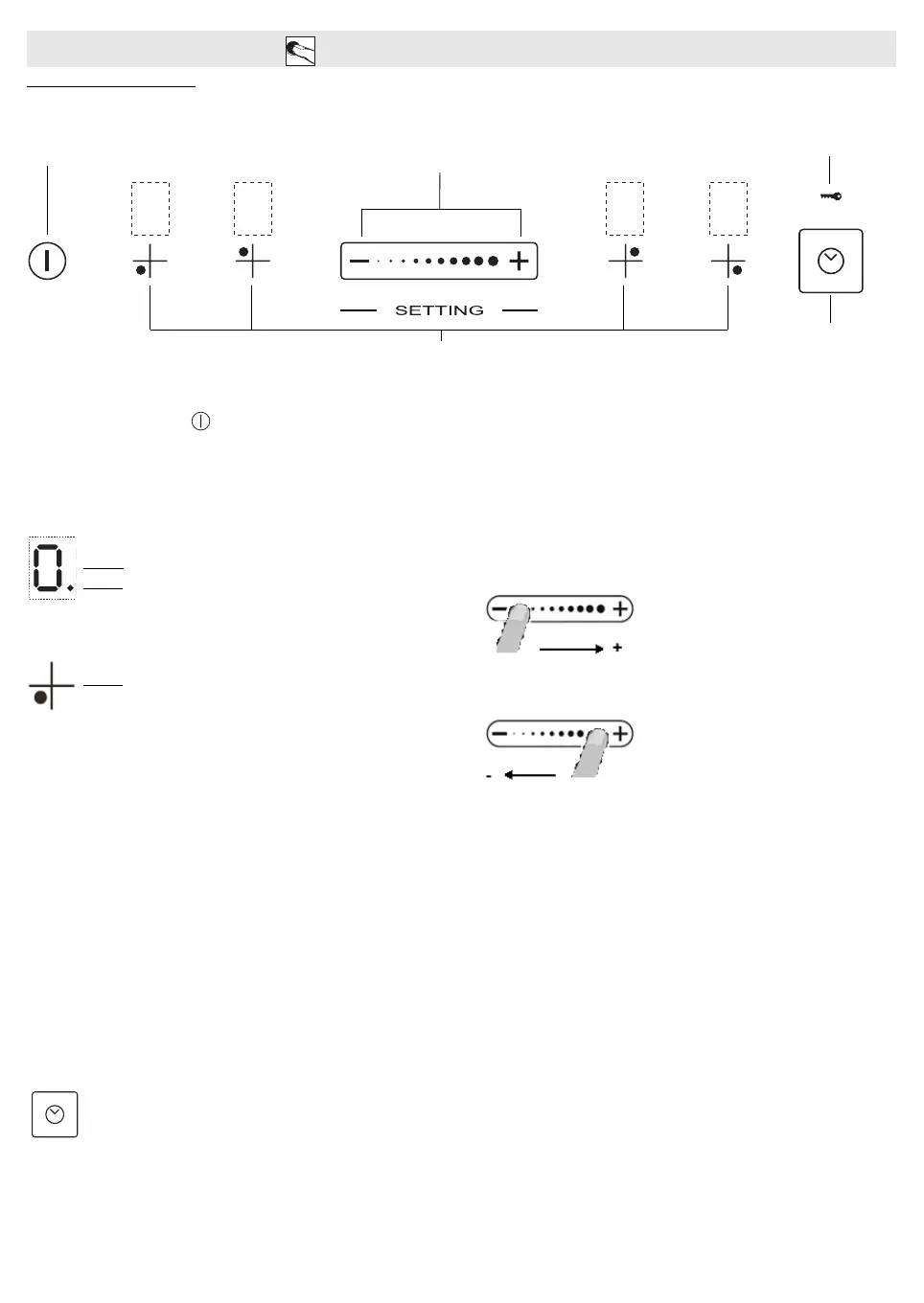 Slider it is possible to select the required power level, from min. 0 to max. 9, or booster “P” if available. To increase the power level, slide your finger on the slider from