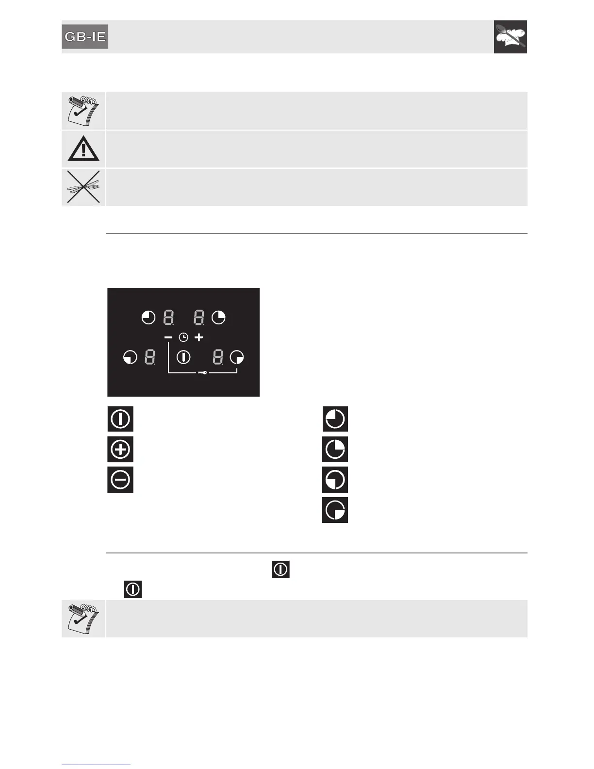 If after having activated the hob, no power value is selected within a few seconds, the hob is