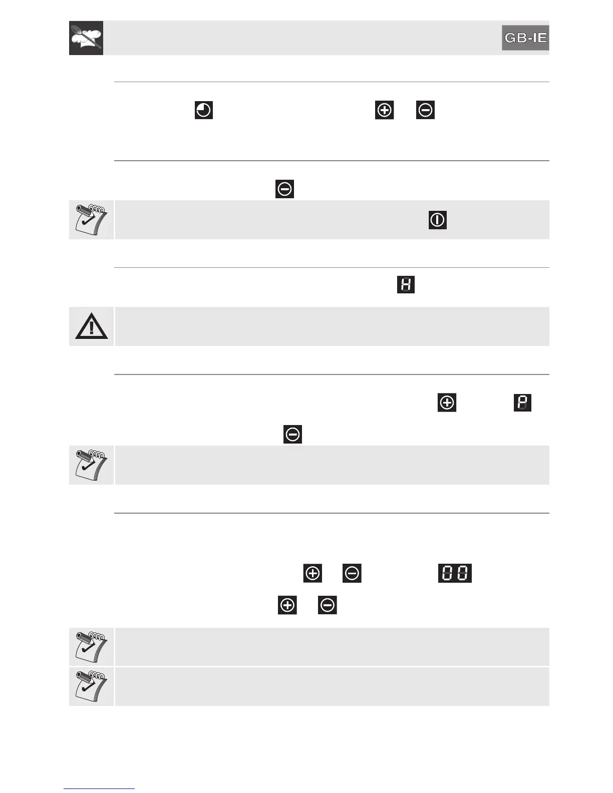 If the cooking zone is still hot after being switched off, the symbol will appear on the display. The