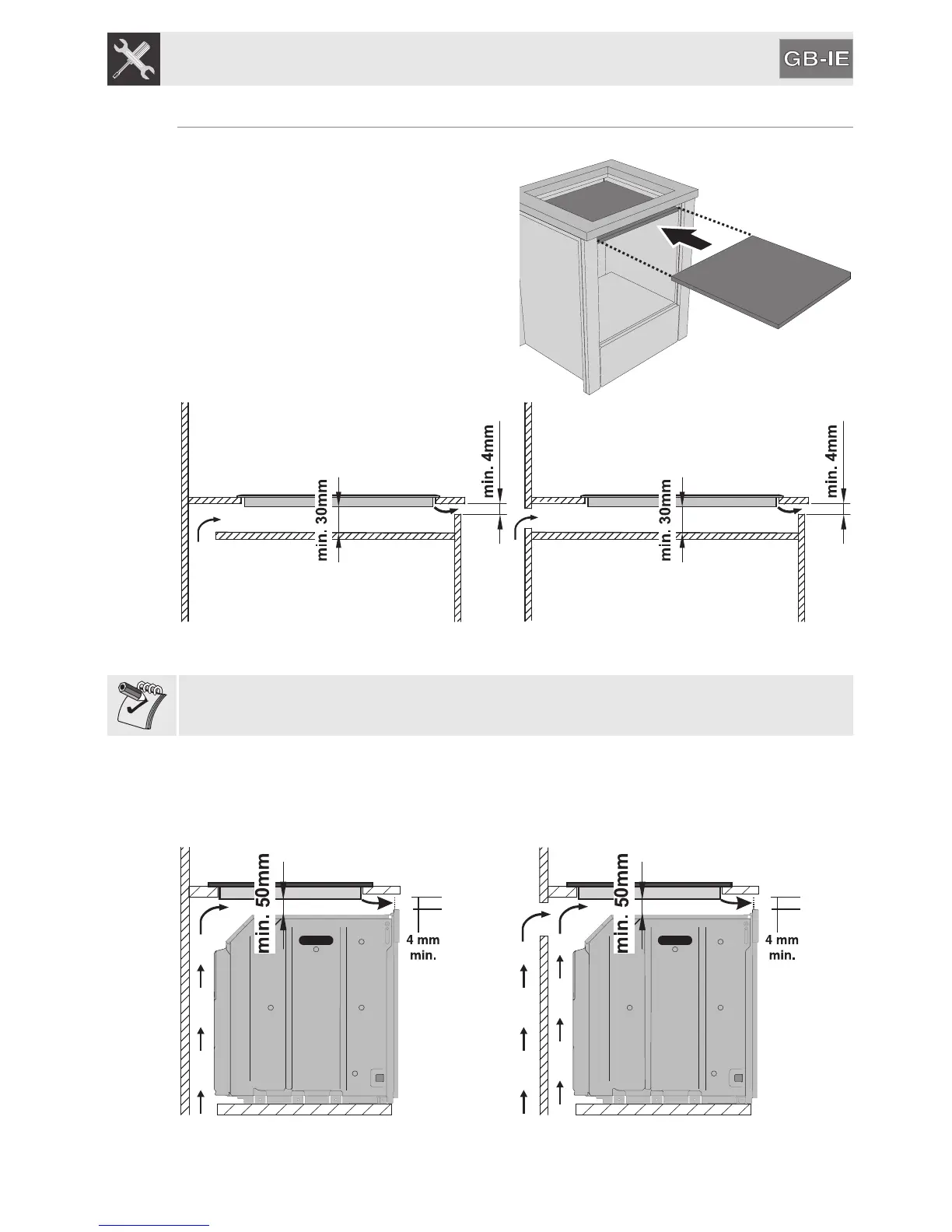 In any event, if installed above an oven, a dishwasher or a fridge, a space of at least 5 cm must be left