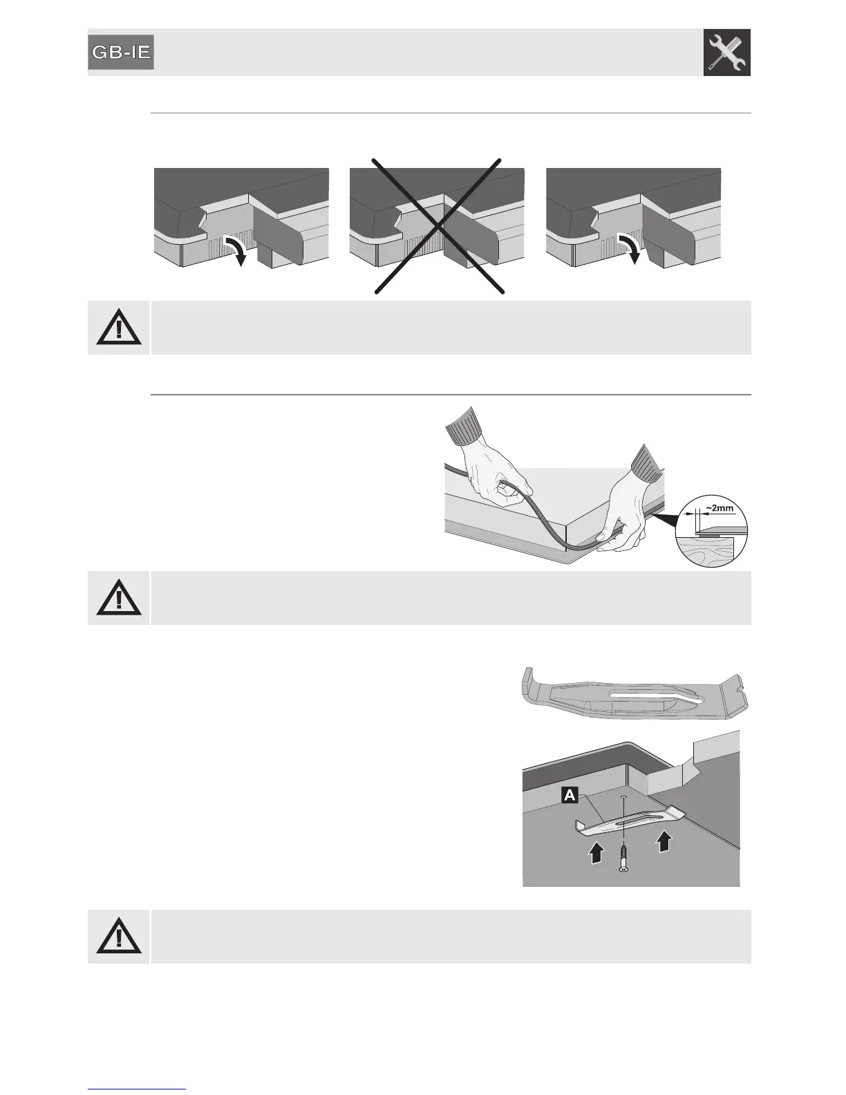 Do not fix the hob using silicone as this would make it impossible to remove the hob, if necessary,