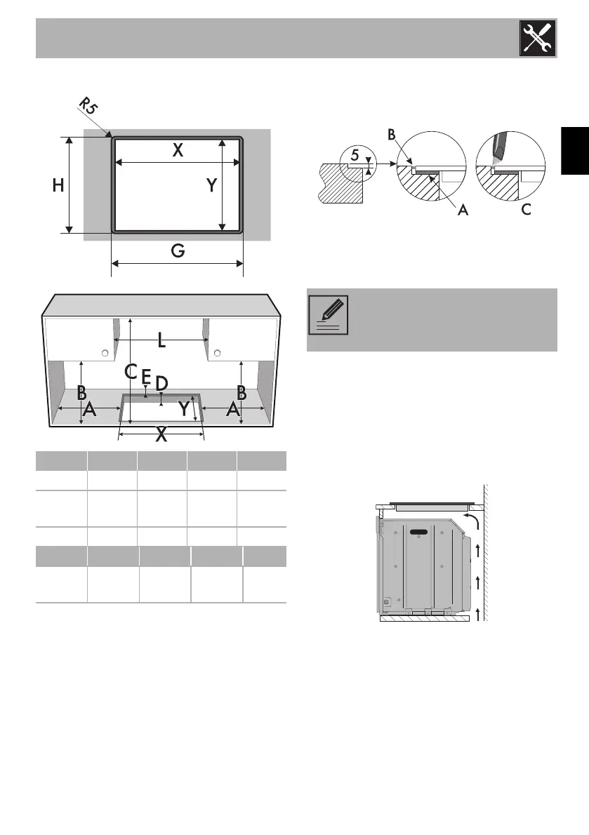 of the appliance installed below.