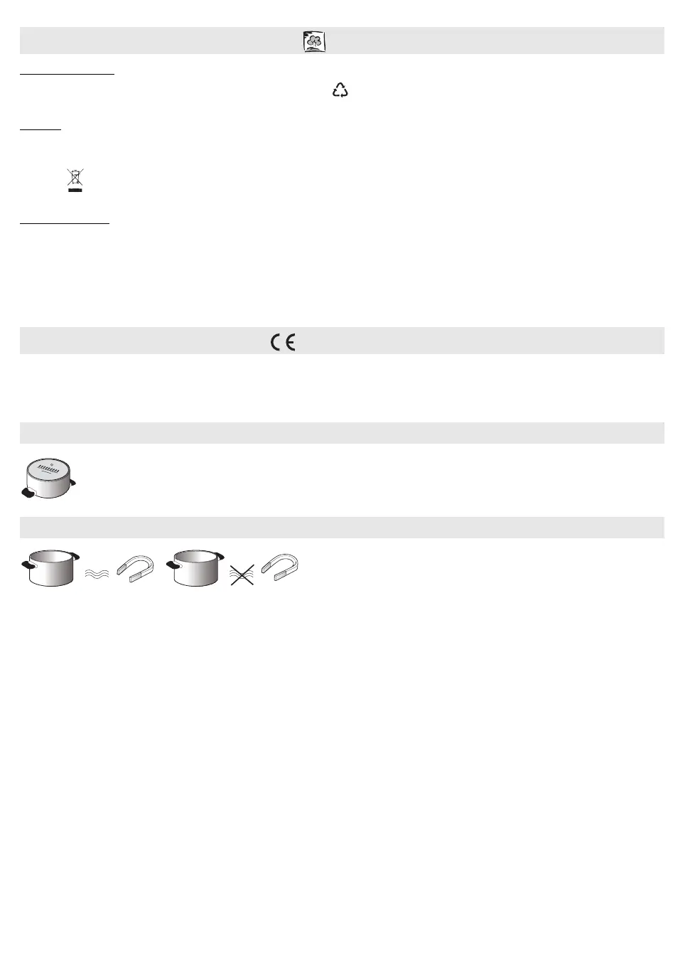 The packing material is 100% recyclable and marked with the recycling symbol ( ). The various parts of the packing must not be dispersed in the environment, but