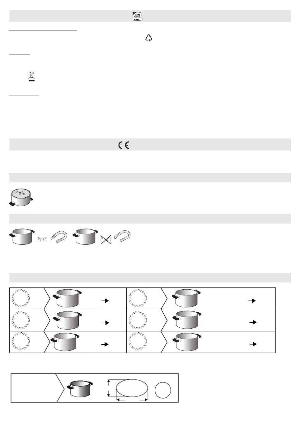 IMPORTANT: the cooking zones will not switch on if pots and pans are not of the correct dimensions. Only use pots bearing the symbol “INDUCTION SYSTEM”