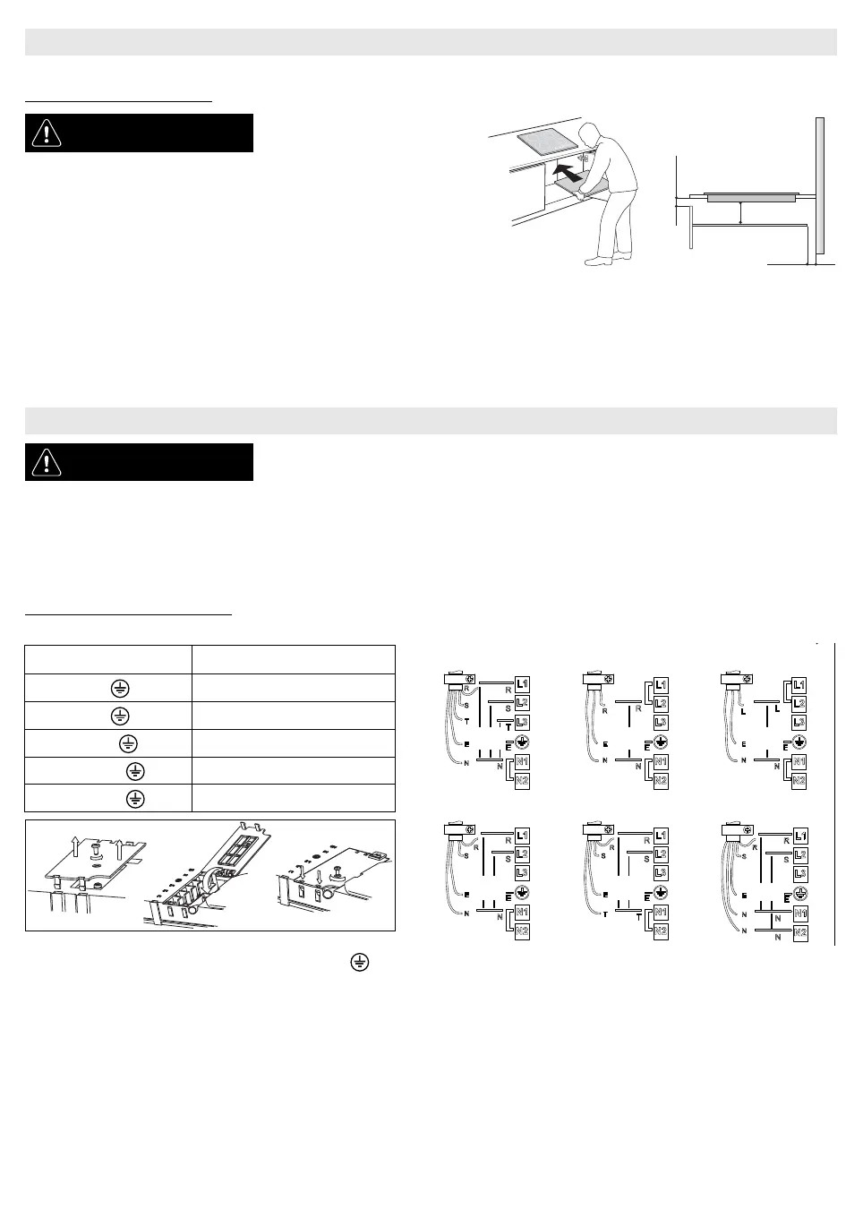 • Do not install the hob above a dishwasher or washing machine, to prevent the electronic circuits from coming into contact with steam or moisture and being damaged