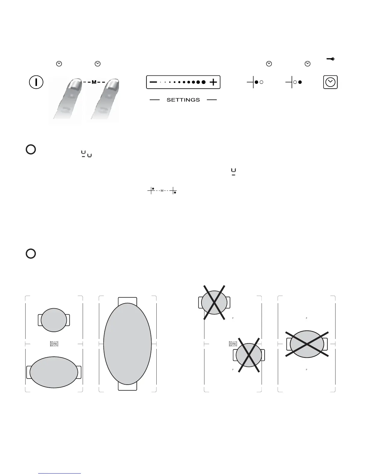Important: make sure to place the pans centered on the cooking zone in the way to cover the center of the single cooking zone.
