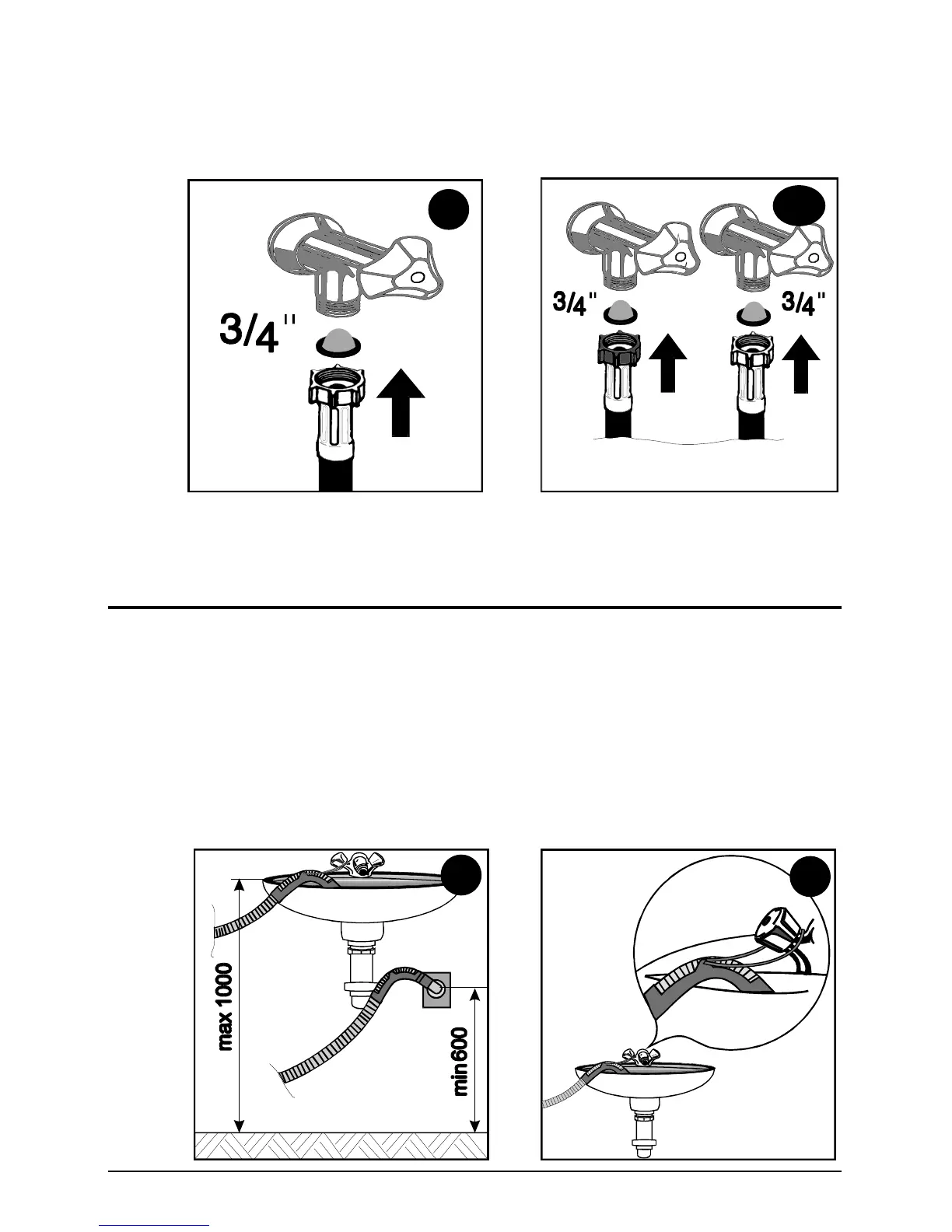 Insert the enclosed washers with filter into the loose ends of the hoses