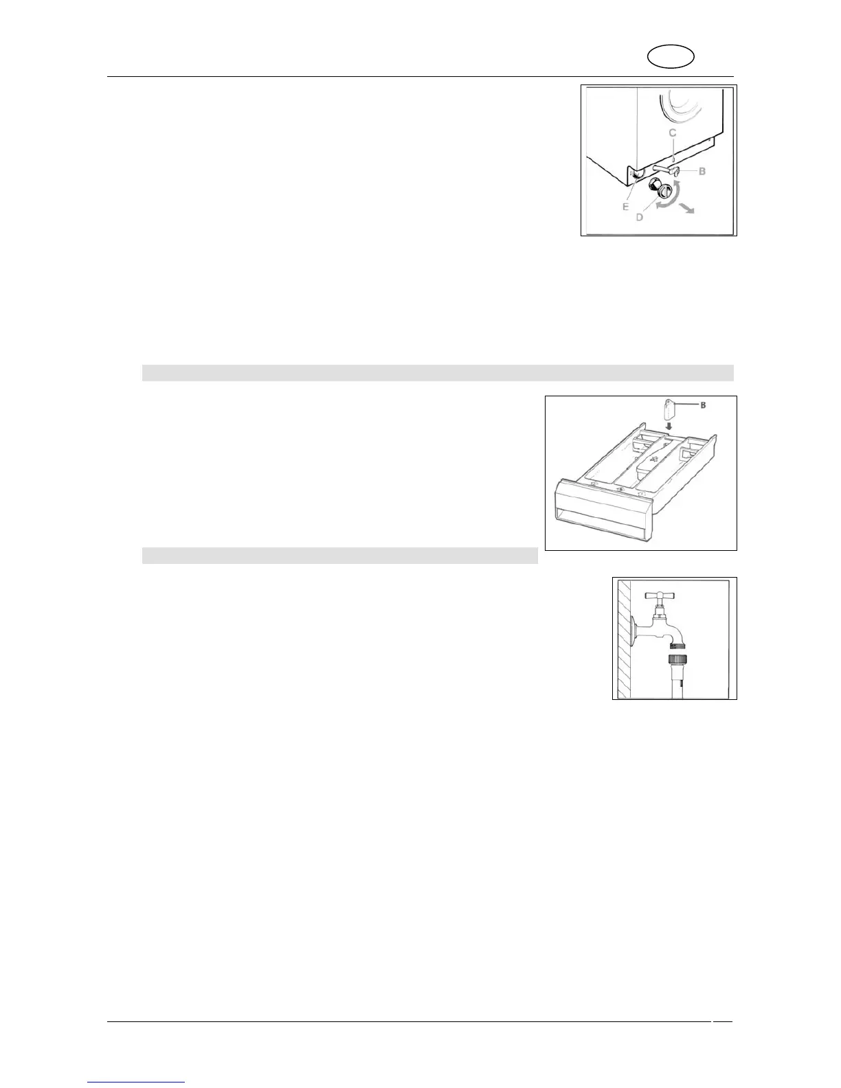 Fix the drain hose by snapping the plug into place «C».