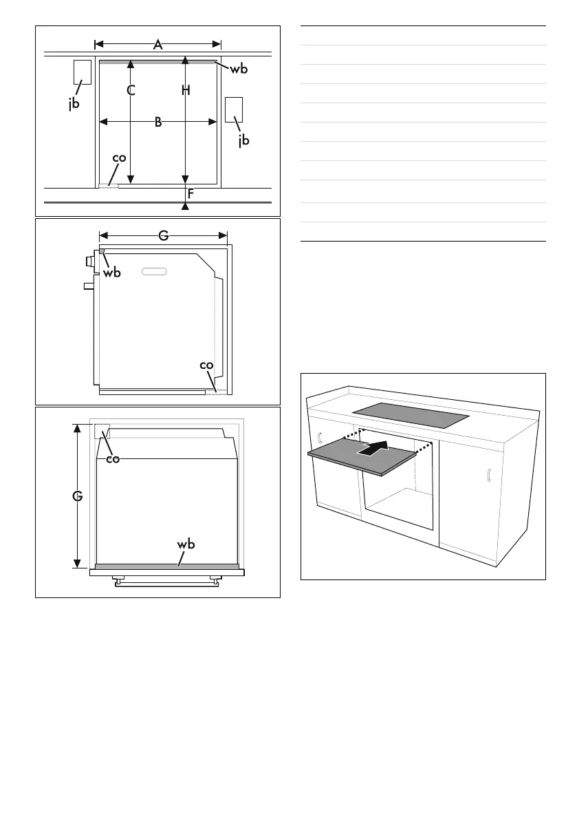 Mounting under worktops (mm) (pyrolytic