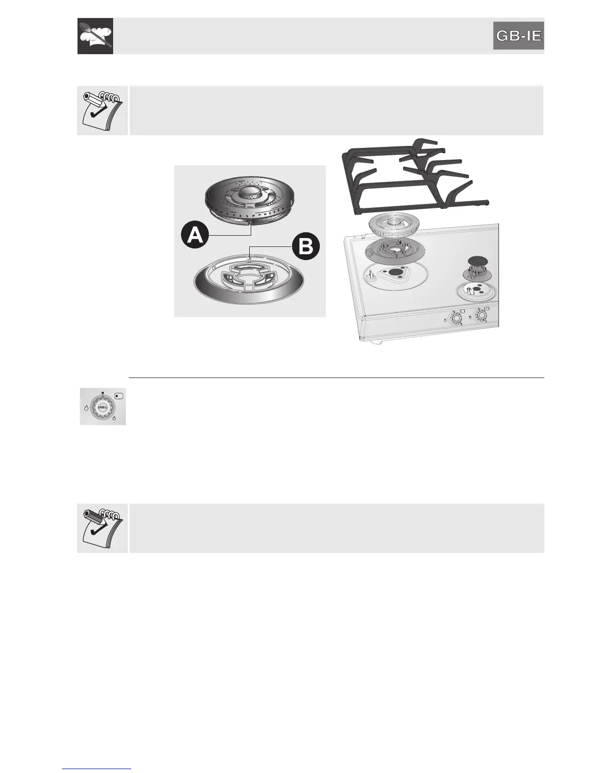 Before turning on the burners, make sure that the burners, flame-spreader
