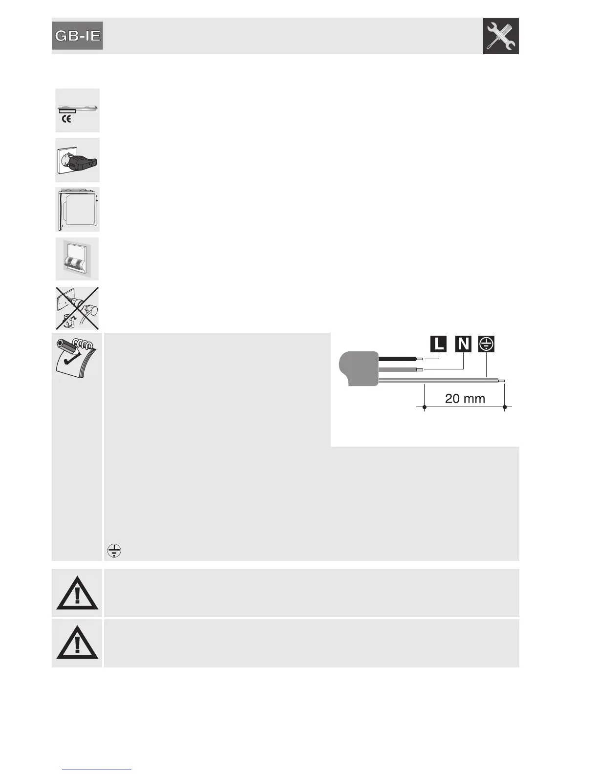 The plug at the end of the supply cable and the wall socket must be of the same
