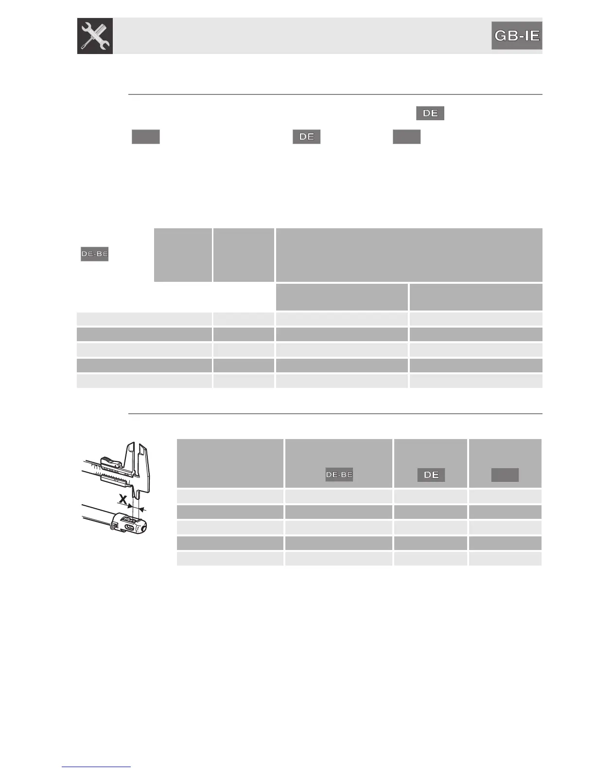 Refers to distance “X” in mm.
