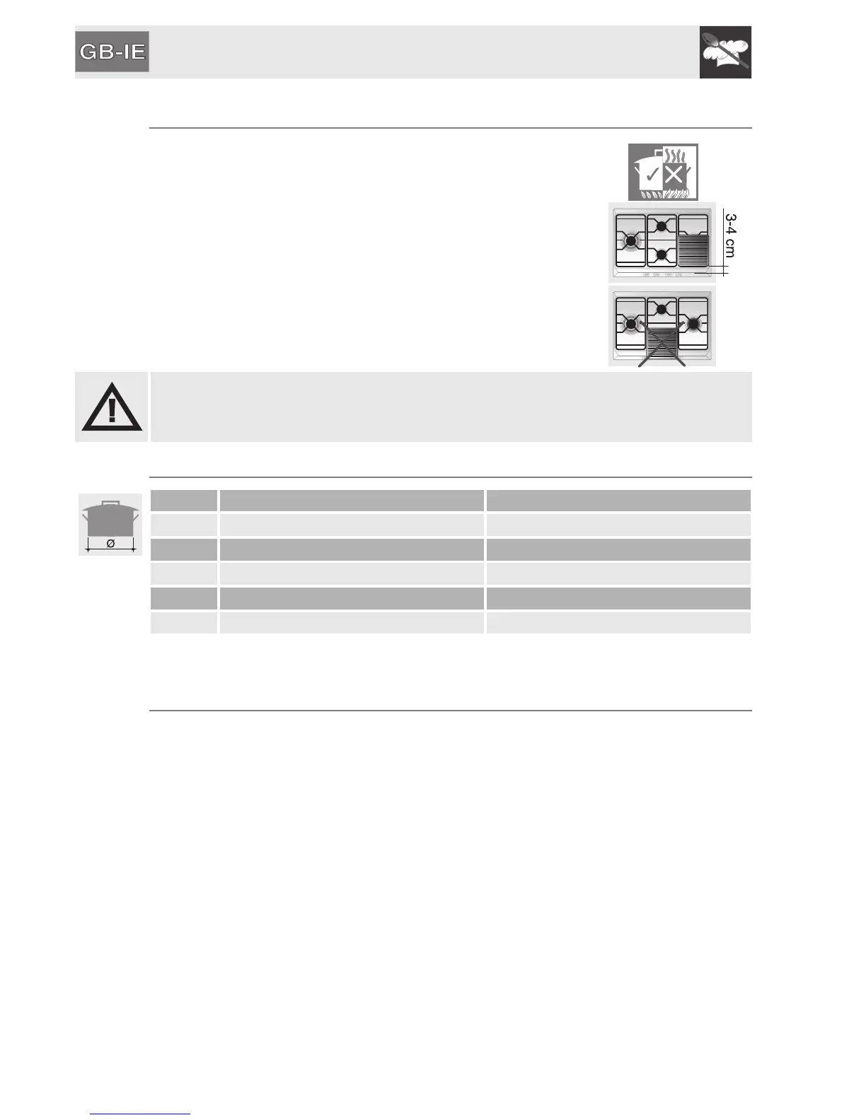the burner (see “4.3 Pan diameters”).
