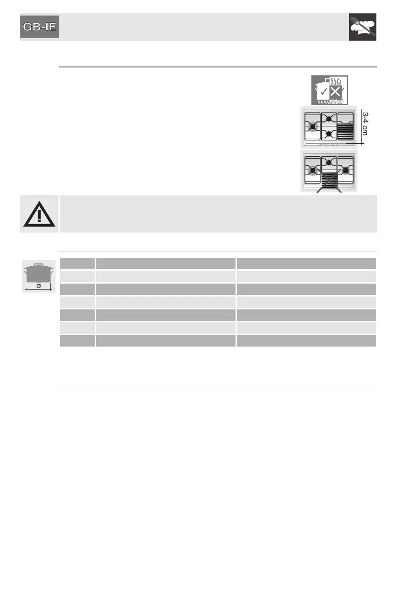 • leave a gap of at least 160 mm between the edge of the griddle plate and the