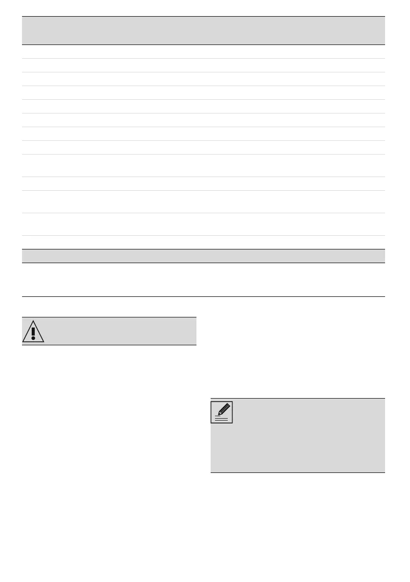 The times indicated in the table do not include preheating times and are provided only as a guide.